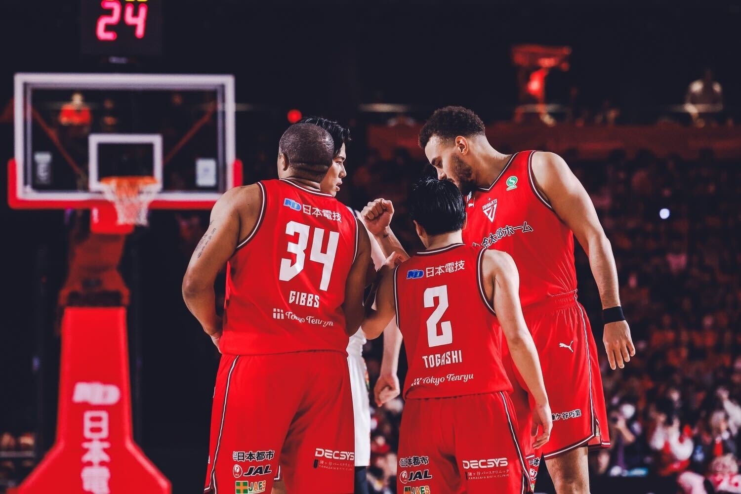 この日はパートナー企業「日本電技」presentsという事で来場者全員に荒尾岳選手の叫ぶ顔がデザインされた「岳タウォール」がプレゼント。こちらのタウォールはフリースロー時やチームを熱く応援する際に自身の前に掲げたり揺らしたりして使用する応援アイテムで特にこの日の後半時、琉球の選手がフリースローを打つ際に大活躍を見せた。フリースローを打つ瞬間、千葉ジェッツベンチ側のゴールエンド席(ゴール裏側の座席)一面がこのタウォールで埋め尽くされ、まるで大きな壁のような圧倒的な存在感と視覚的効果で千葉ジェッツのゴールを死守してくれました。その影響があったかはわかりませんが、琉球の後半フリースローは8本中1本しか成功しないという結果となり、ホームチームを後押しするという意味でアリーナが大熱狂に包まれただけに今後も応援がより楽しくなる取り組みとして、千葉ジェッツの新しい文化として根付いていったら良いなと考えております。
