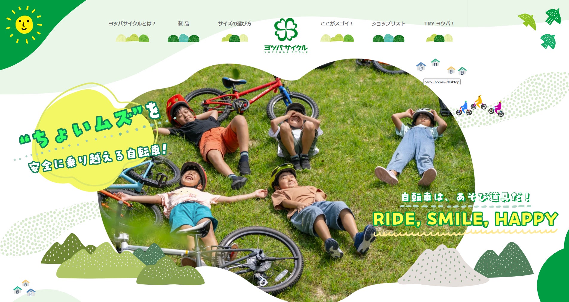 WITH(ウィズ)の発売に合わせ、公式WEBページをリニューアル。以前よりもサイズの選び方が分かりやすくなり、 ヨツバサイクルが大切にしている想いやものづくりの背景も、 より感じてもらえる内容になっています。
