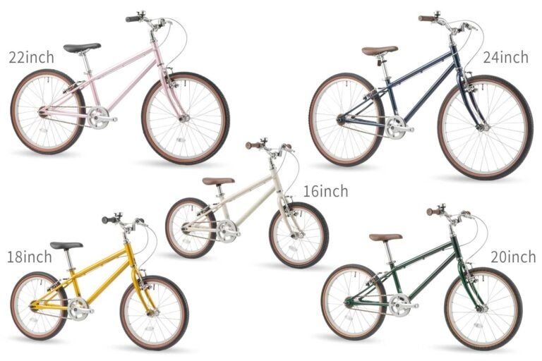 16インチから24インチまでの全5サイズを展開。年齢や体格に合わせて、最適なサイズを選べます。