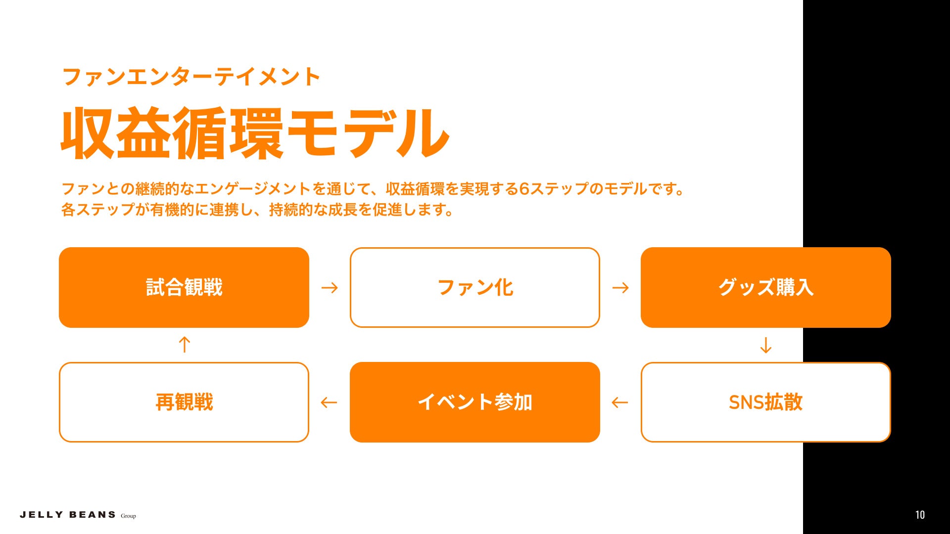 「ファン化 → イベント参加 → グッズ購入 → SNS拡散 → 再観戦」