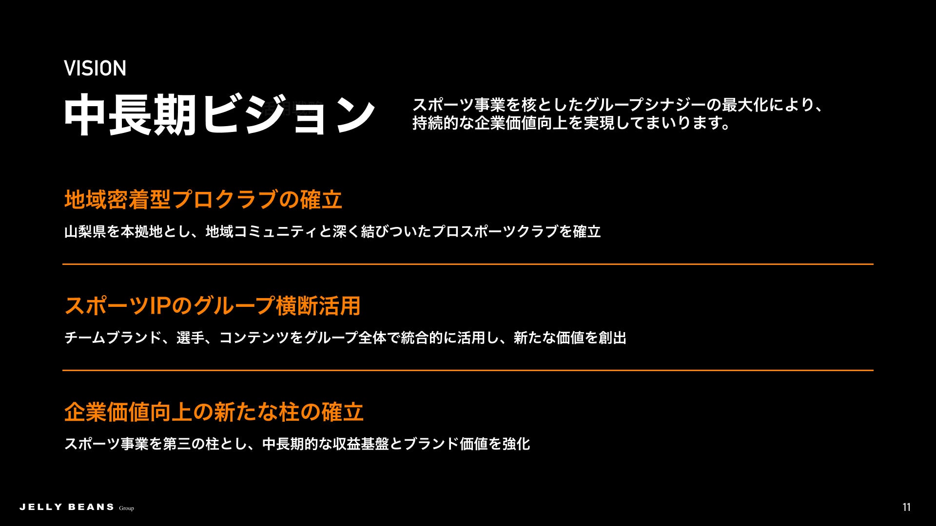 このように、「スポーツ運営」「アパレルD2C」「エンタメ・配信・IP」の3領域を有機的に結び付けることで、新たな収益基盤の構築とブランド価値の向上を同時に実現し、グループ全体の競争優位性を強化してまいります。