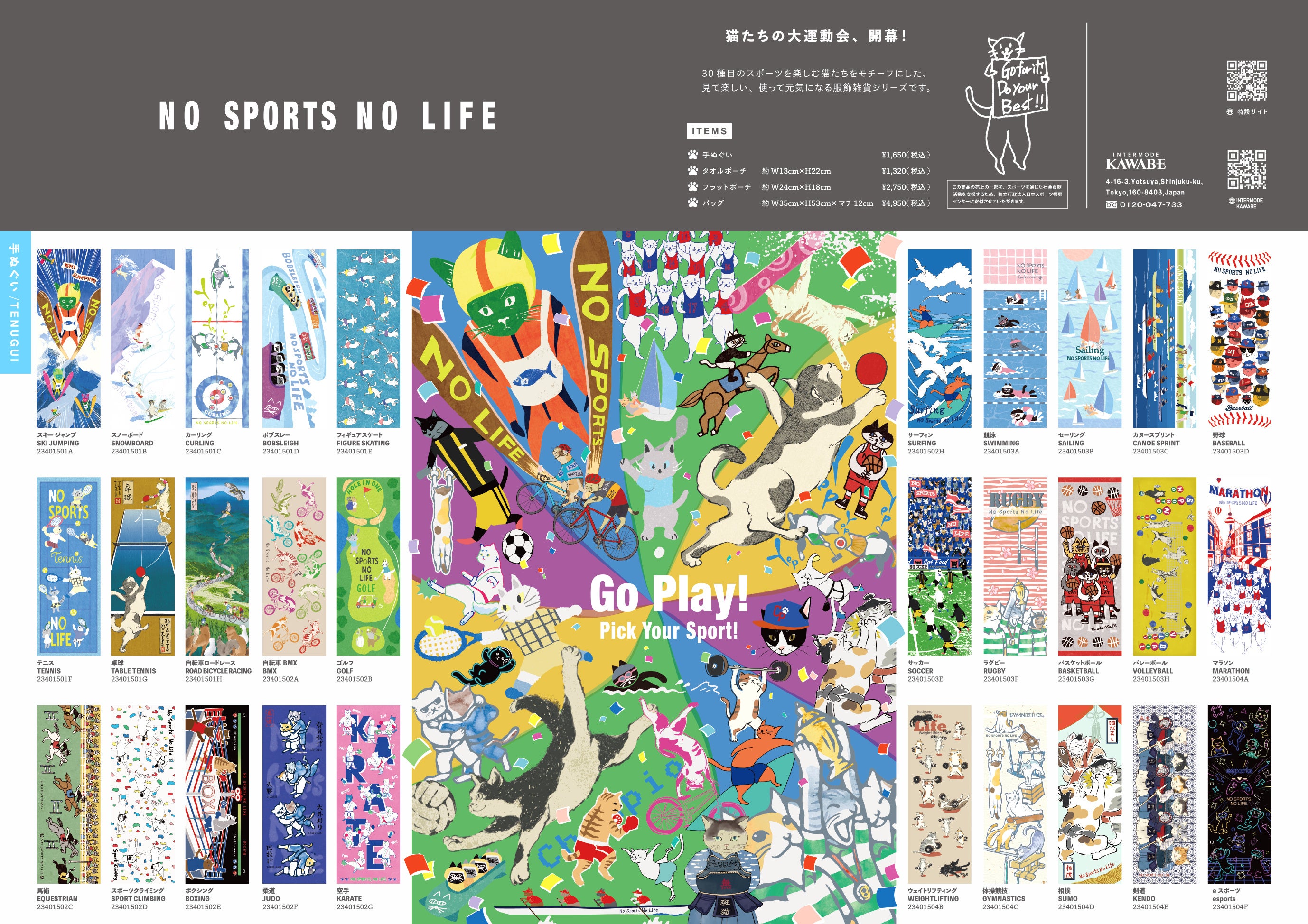 30種目のスポーツに挑戦する猫たちをモチーフにした、遊び心あふれるオリジナルブランドが誕生しました。