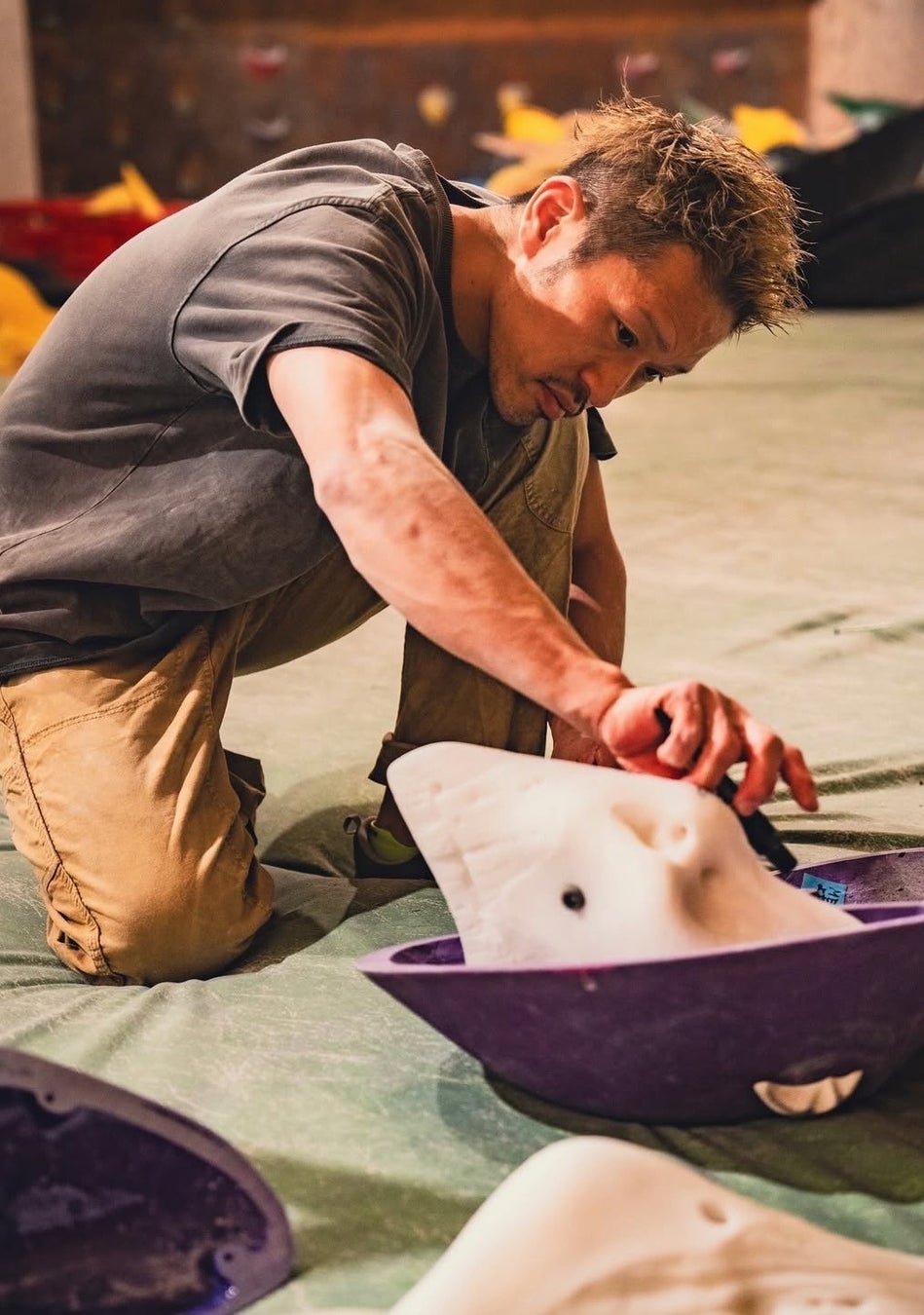 福岡を代表するクライミングジム「STUMP CLIMBING」のオーナーであり、国内外問わず数々の大会でセッターとして活躍。特に緩傾斜や凹角でのルート作りを得意とし、唯一無二のセットスタイルで多くのクライマーを魅了。いいちこSTEP第一回大会でもセットおよび実況にて参加。第二回大会では実況のみに飛び入り参加するなど、今大会に関わりが深いゲストセッターです。