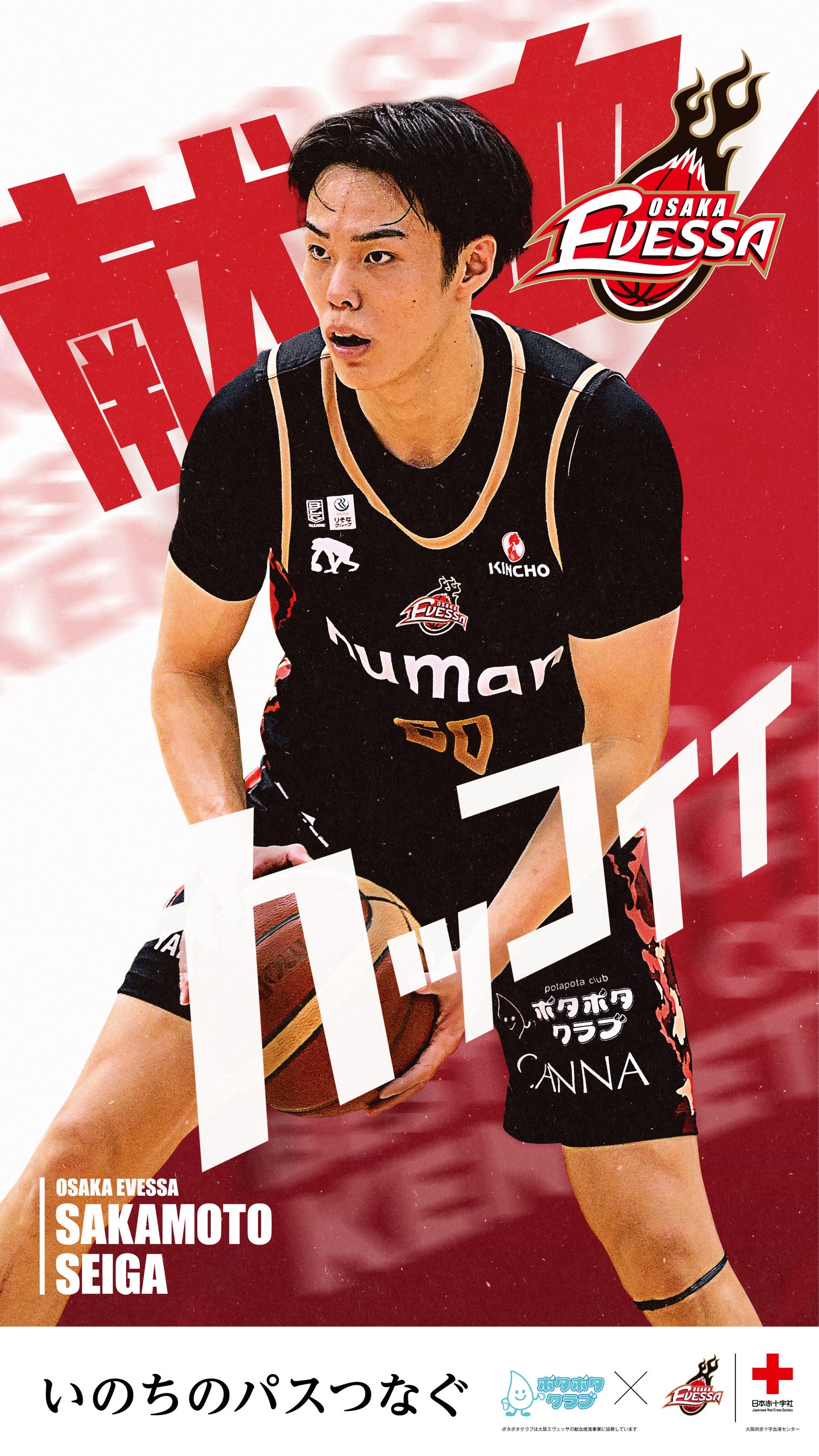 本プロジェクトは、献血を“いのちをつなぐパス”に見立て、スポーツを通じて献血への理解を深める活動です。大阪エヴェッサは2016年より献血協力団体として継続的に取り組み、毎年所属選手を起用したポスターを制作しています。
