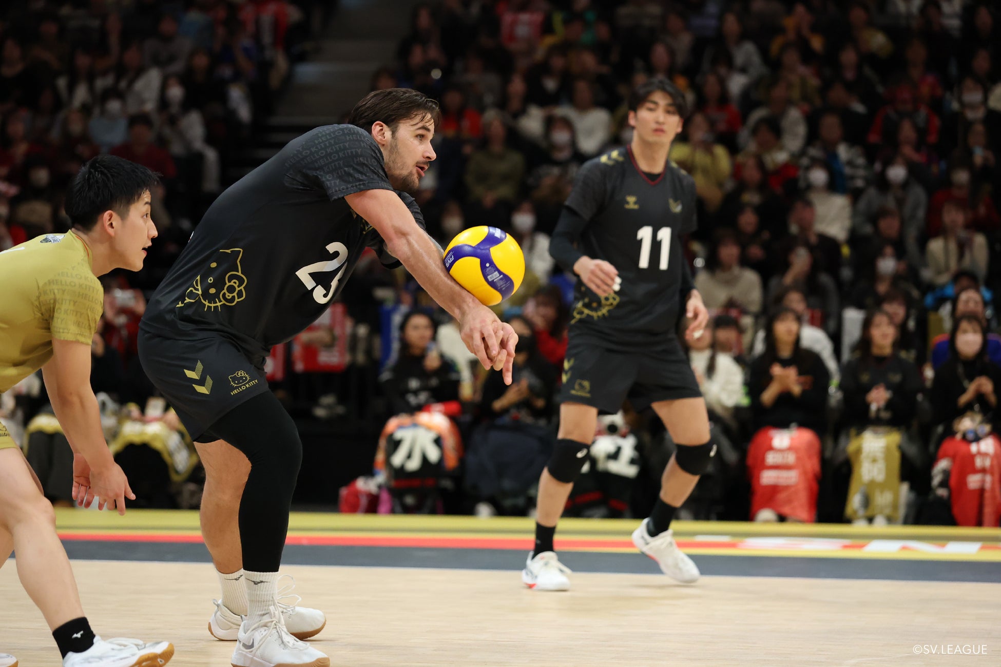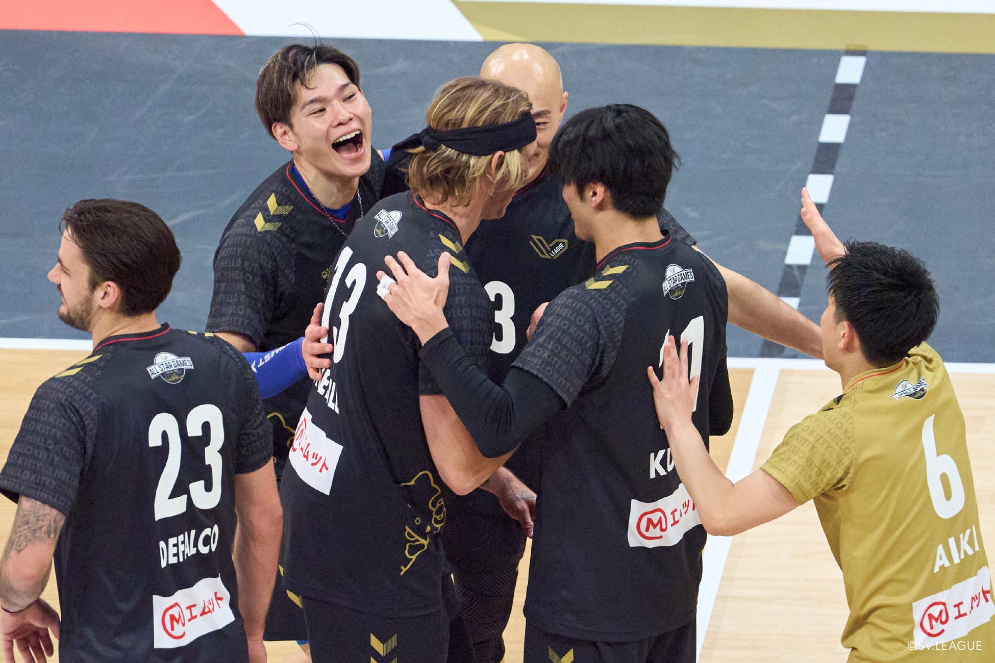 1、2セットは、株式会社サンリオのキャラクター「ハローキティ」とコラボレーションしたヒュンメルユニフォームを着用。裾から顔を出すハローキティとさりげなく入ったロゴがオールスターゲームの楽しい雰囲気を演出し、WOMENユニフォームは背番号にリボンがついたキュートな1枚。3セット目は、所属する各クラブのユニフォームでプレーし、アリーナにつめかけたファン同様、カラフルなユニフォームでコートが彩られた。