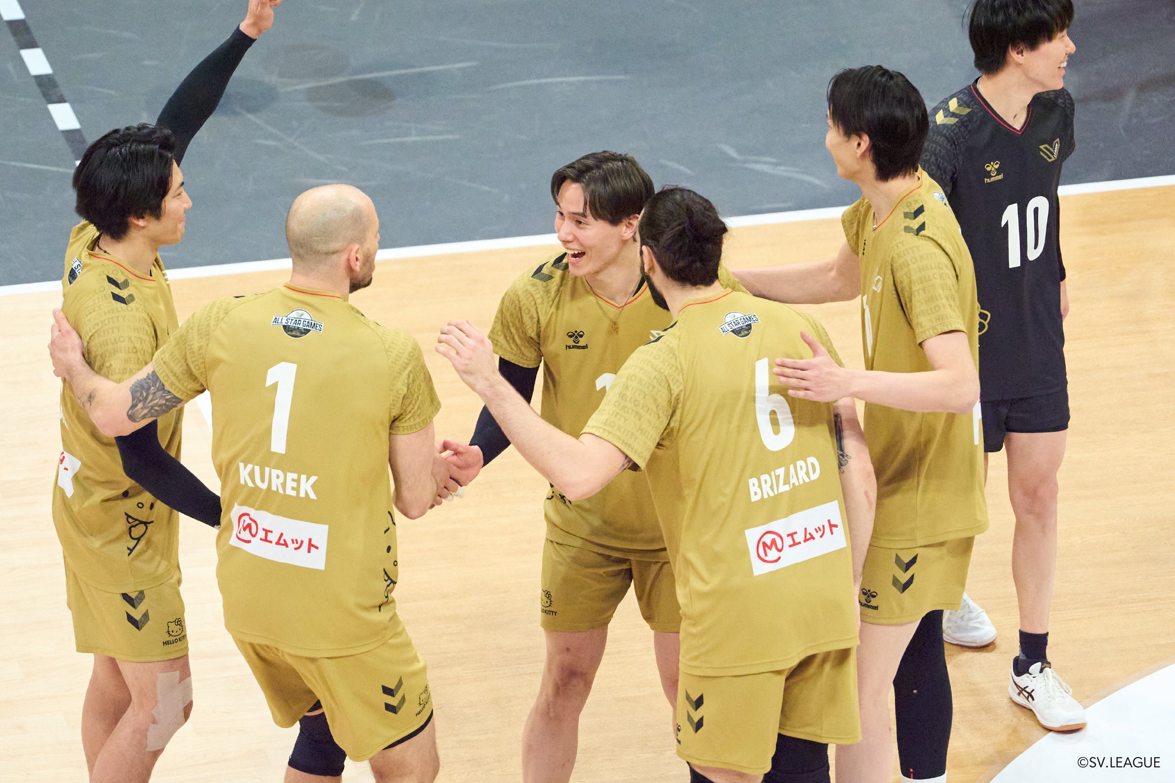1、2セットは、株式会社サンリオのキャラクター「ハローキティ」とコラボレーションしたヒュンメルユニフォームを着用。裾から顔を出すハローキティとさりげなく入ったロゴがオールスターゲームの楽しい雰囲気を演出し、WOMENユニフォームは背番号にリボンがついたキュートな1枚。3セット目は、所属する各クラブのユニフォームでプレーし、アリーナにつめかけたファン同様、カラフルなユニフォームでコートが彩られた。