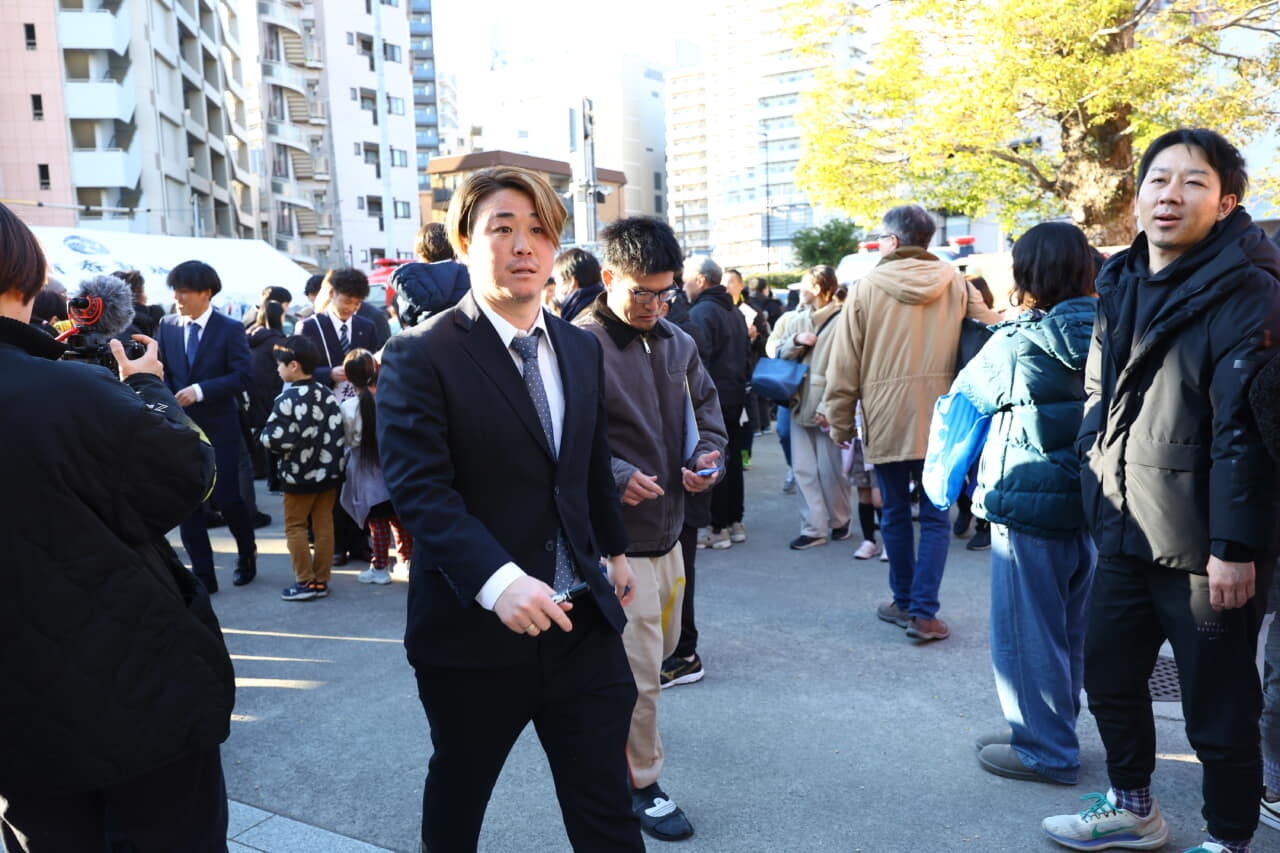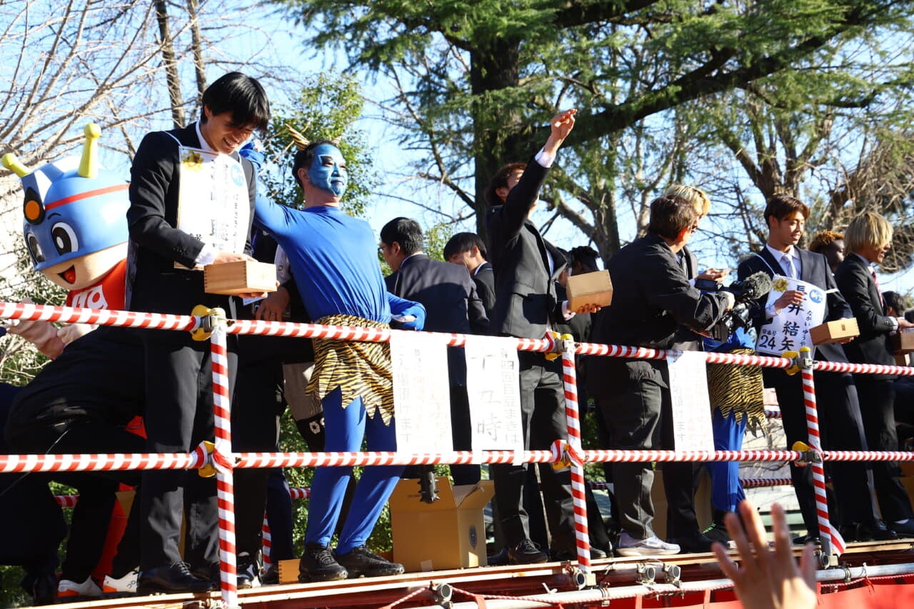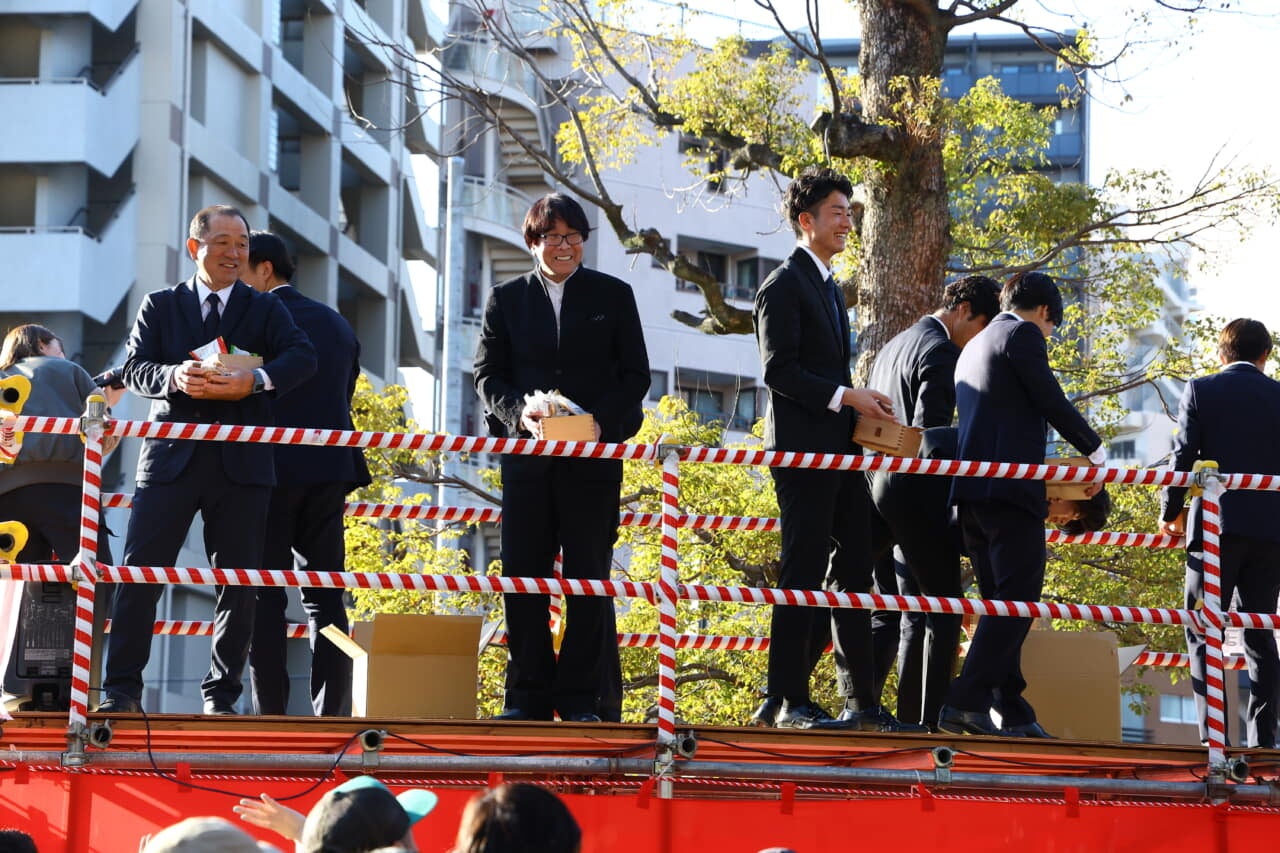 当日は、南葛SC全選手、風間監督、岩本GMが特設舞台に登壇し、福豆やお菓子をまきながら、地域の皆さまと触れ合いました。