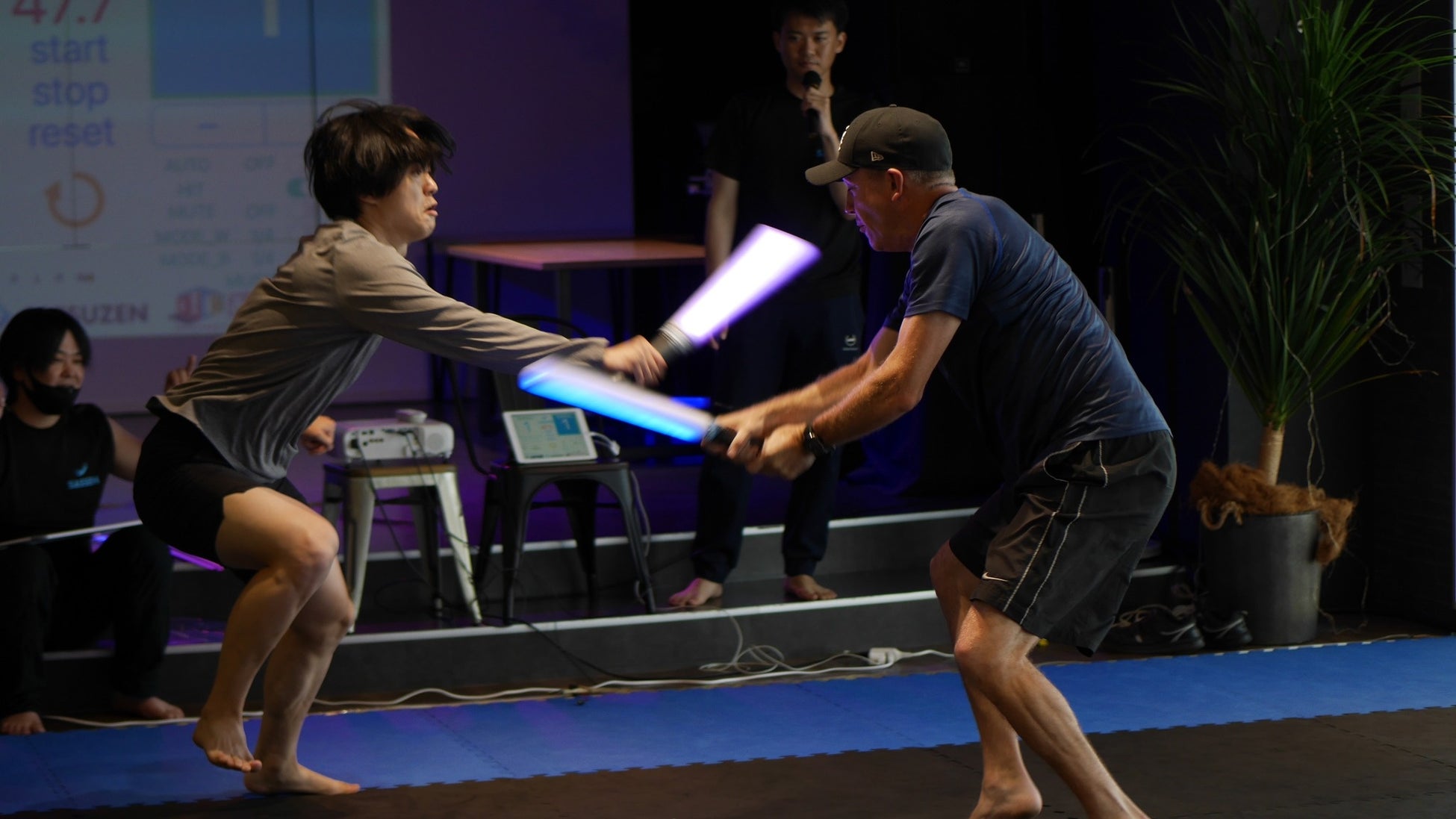 センサー内蔵の刀を使用し、iPadアプリで正確に判定を行うデジタルチャンバラです。「怪我をさせない武道」を発祥として生まれた、年齢性別問わず誰もが安全に本気で楽しめるスポーツです。