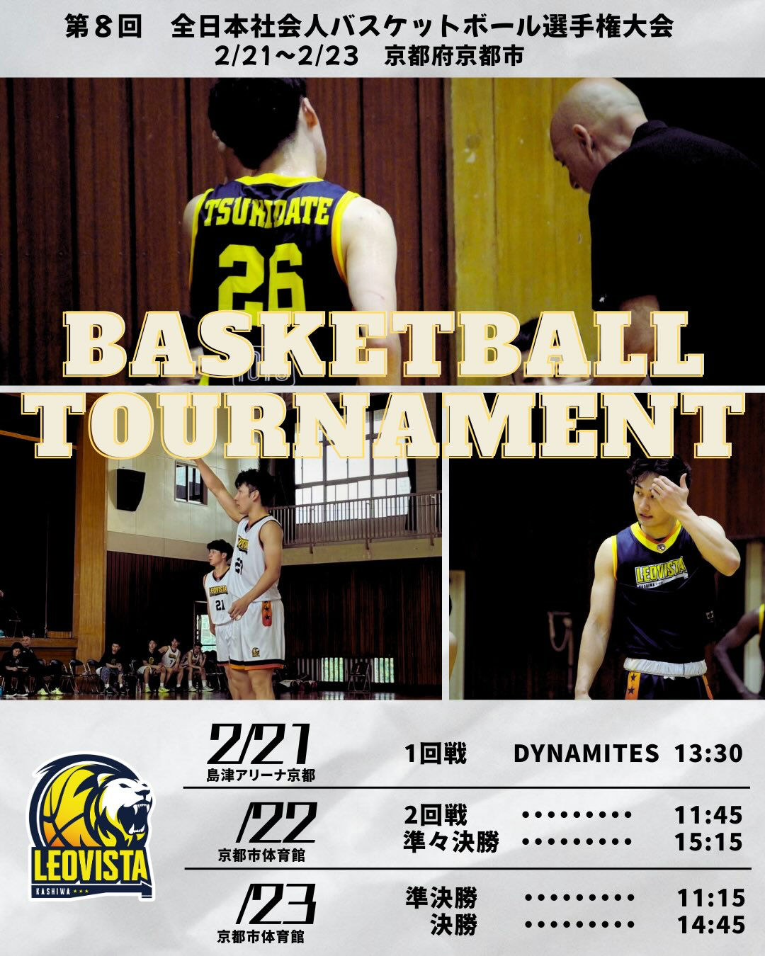 2月21日(金)より京都府京都市にて開催される「第8回 全日本社会人バスケットボール選手権大会」へ出場いたします。