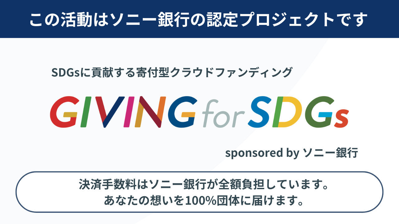 「GIVING for SDGs sponsored by ソニー銀行」は、ソニー銀行が「GIVING for SDGs」に協賛することで実現している企業支援型のクラウドファンディングです。一般的な寄付型クラウドファンディングでは、寄付決済あたり9~20%の中間マージンが発生しますが、「GIVING for SDGs」では企業がクラウドファンディングの支援や中間マージンにあたる費用を協賛することで決済手数料率0%を実現しています。