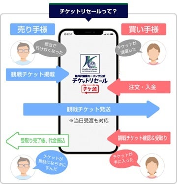 本サービスは、個人間のチケットお取次ぎサービス「チケット流通センター(チケ流)」において、行けなくなった観戦チケットを大会のルールに基づき自由にチケットを売り買いできるチケットリセールサービスです。
