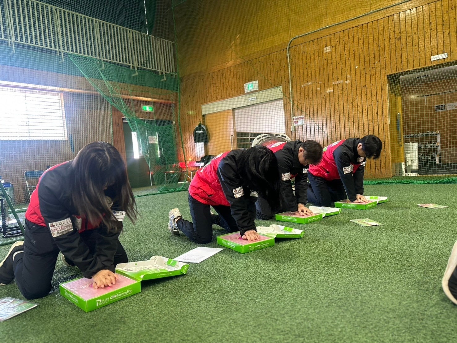 ・万が一の場面に備え、AEDの使用方法や心肺蘇生の手順を学び、実技を通して命を守るための対応を身につけることができました。