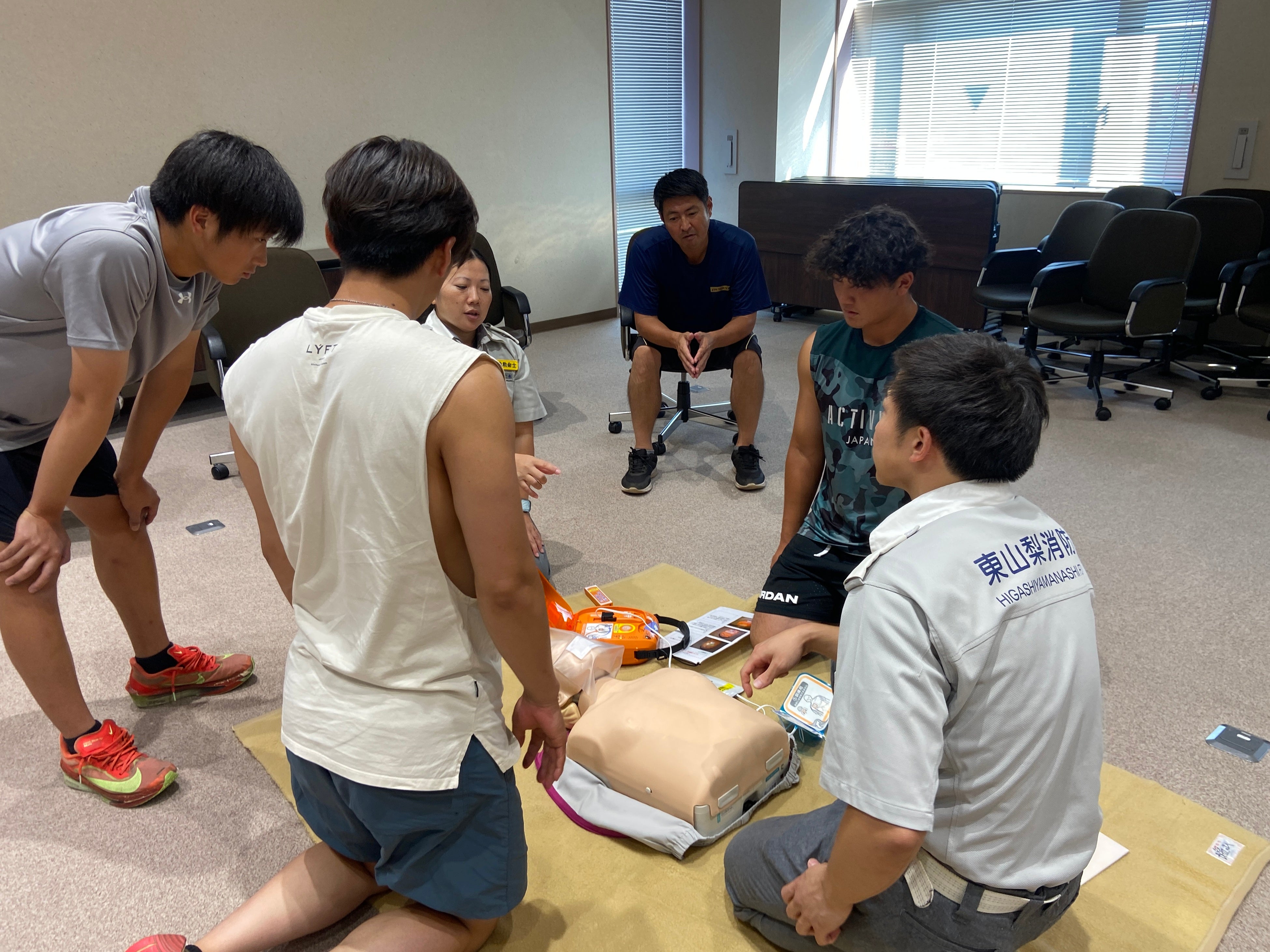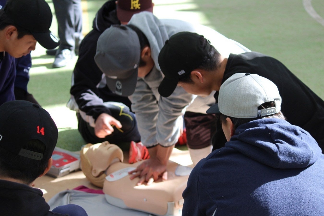・万が一の場面に備え、AEDの使用方法や心肺蘇生の手順を学び、実技を通して命を守るための対応を身につけることができました。