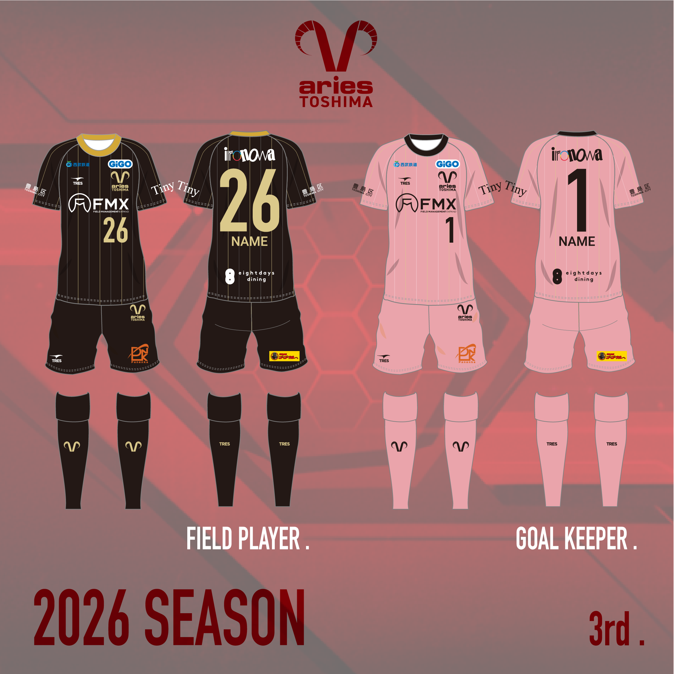 ・3rdユニフォーム(FP:黒 / GK:ピンク): 「豊島の夜に輝く、至高の輝き」