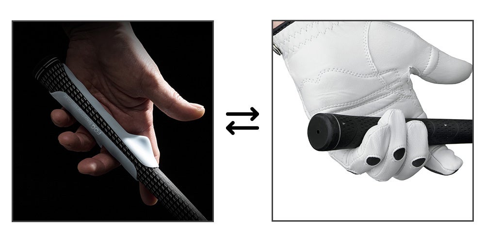 グリップの正しい握りを矯正する目的で作られましたが、その素材を極薄のシリコンで製作したためグローブ以上のグリップ感があり、素手で使った方が繊細なコントロールが可能なグリップサポーターになりました。