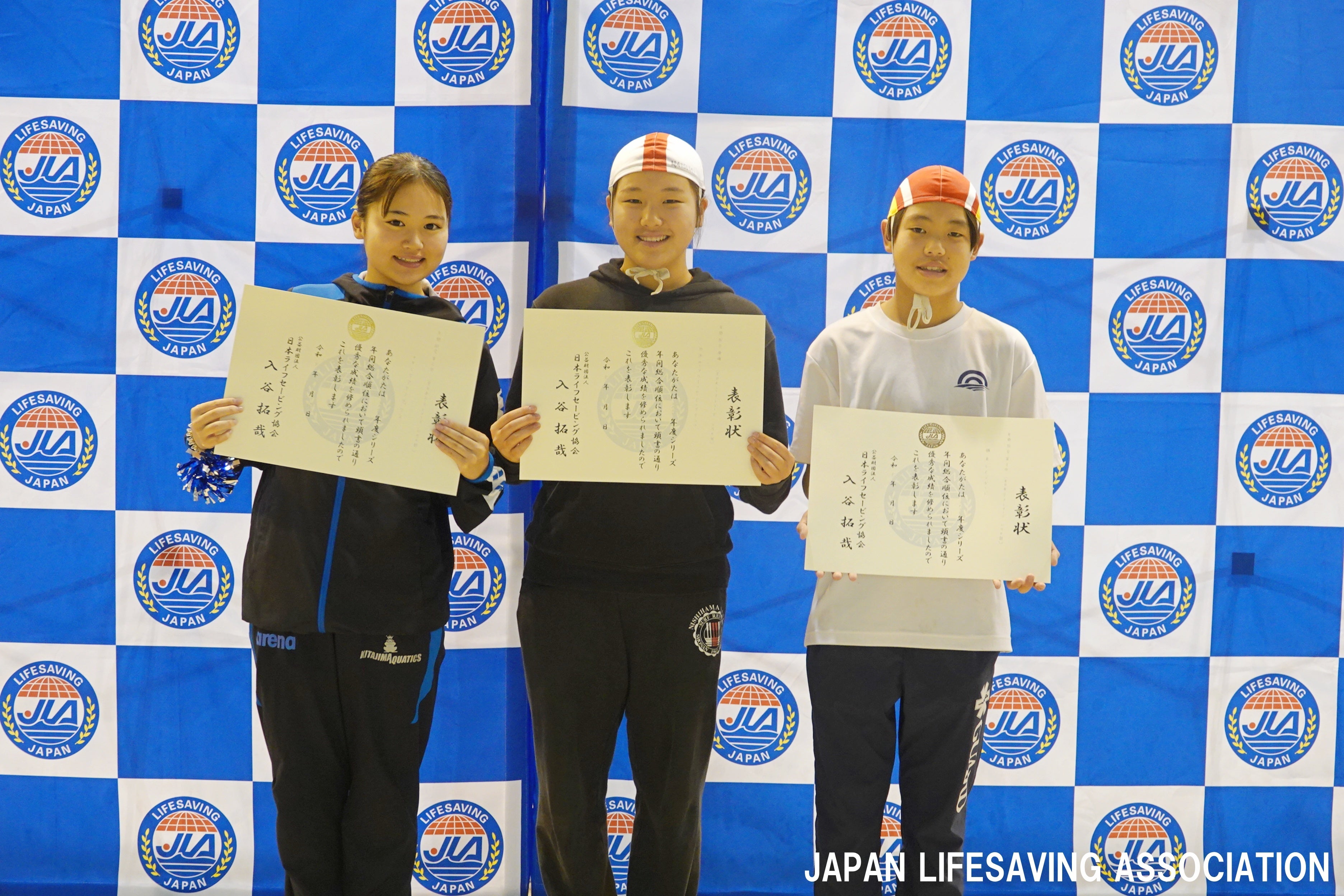 キタジマアクアティクスの中西裕愛選手、西浜サーフライフセービングクラブの浜地櫂依選手、高田理世選手はフィン競技、フィンを履かないで泳ぐ種目、マルチに活躍していました。