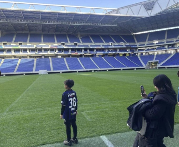 まずは歴代のトロフィーやクラブの記念展示が並ぶエリアを訪れ、子どもたちはキラキラとしたトロフィーを間近で見て目を輝かせていました。ガンバ大阪の歴史と重みを肌で感じ、憧れがさらに大きくなったようです。