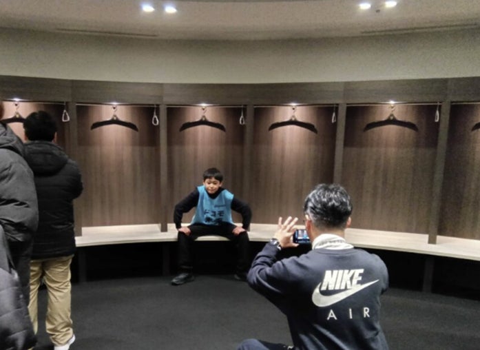 普段は足を踏み入れられない神聖な空間で、実際のロッカーに座り、選手気分を味わう子どもも。試合前の緊張感やチームの絆を感じる雰囲気に触れ、興味津々の様子でした。
