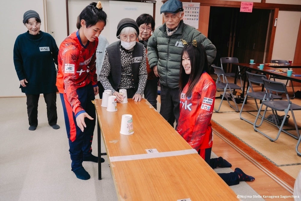 「ふれあい・いきいきサロン茜の会」は相模原市南区の新磯地区を拠点とする、高齢者の身近な交流・仲間づくりの場です。ノジマステラ神奈川相模原は2024/25シーズンより2カ月に1回程度、茜の会の皆さまと交流会を行っています。
