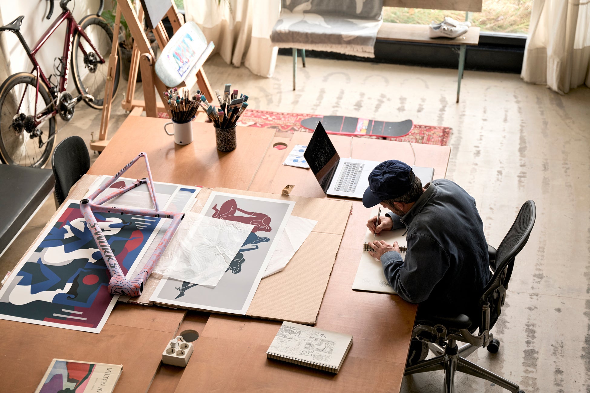 パラにとってサイクリングはスピードを伴う自由。雑音を消し去り、創造性を研ぎ澄ませる儀式のような存在です。長年Tarmacに乗ってきた彼は、自分の愛車の延長線としてデザインを構築。90年代のサイクリングカルチャーをルーツに、彼の象徴的な丸みのある手描きスタイルで創り上げました。