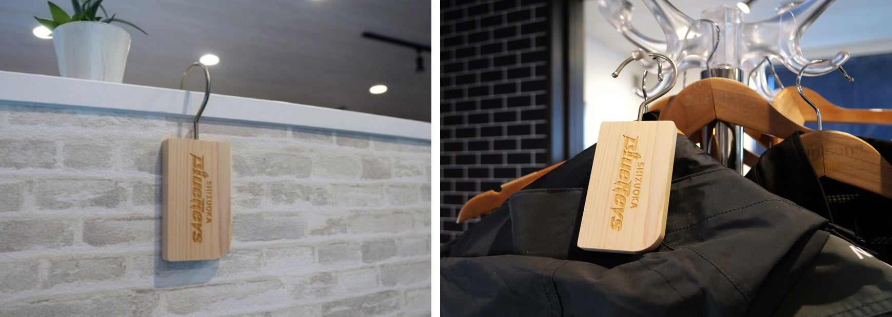 静岡ブルーレヴズのロゴが刻印された特製アロマフックです。静岡県産のヒノキで製作した環境に優しい仕様で、抗菌・防虫・消臭に有効な成分が含まれておりクローゼットにかけてご使用ください。