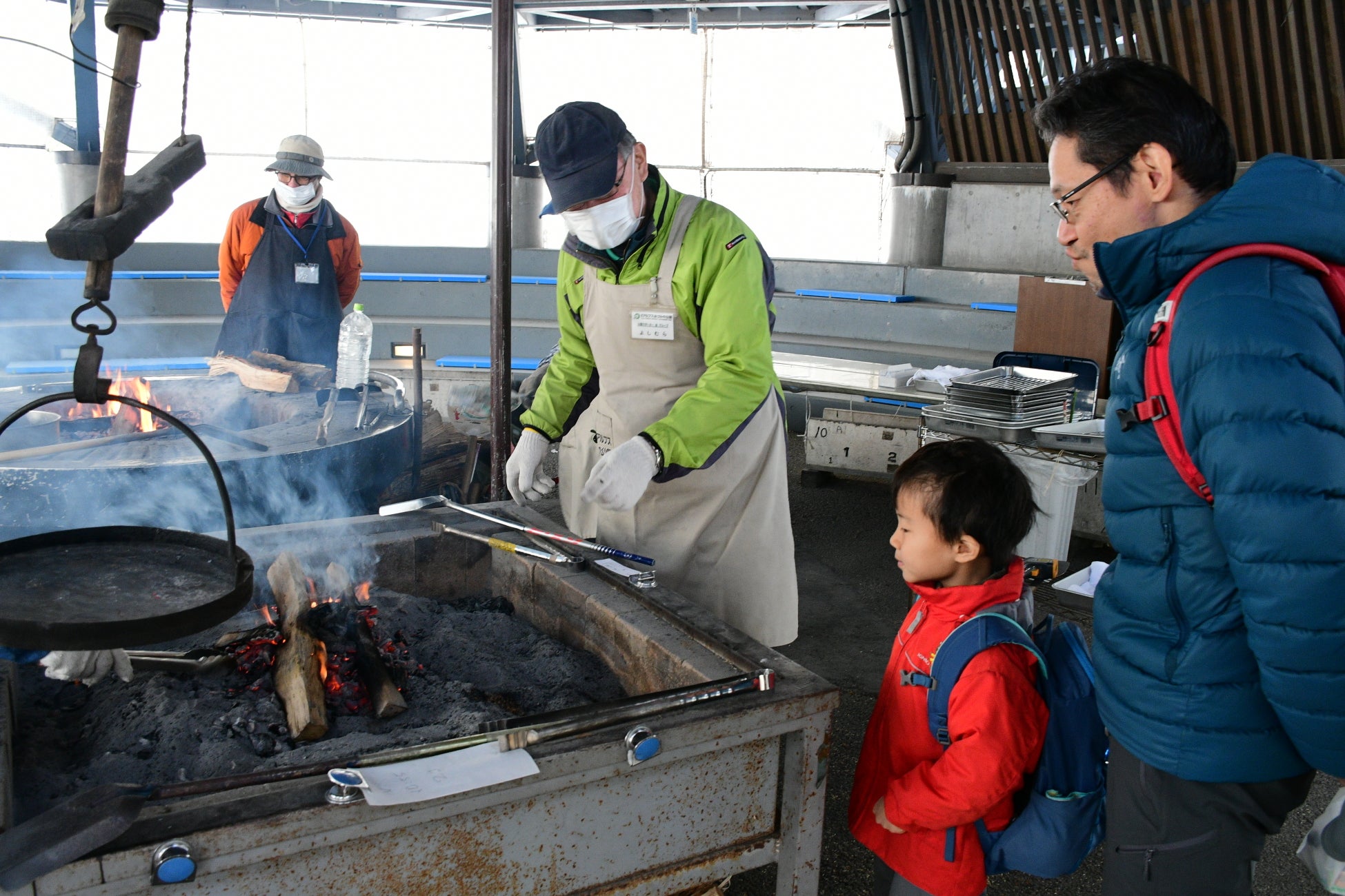 当公園は、自然・食・創作・炭の4グループで構成される「公園サポーター」との協働により運営されています。サポーターの皆さんは、これまでに培ってきた経験や技術を活かし、県内外から訪れる来園者の体験のサポートや交流を通じて、地域貢献と生きがいづくりに取り組んでいます。