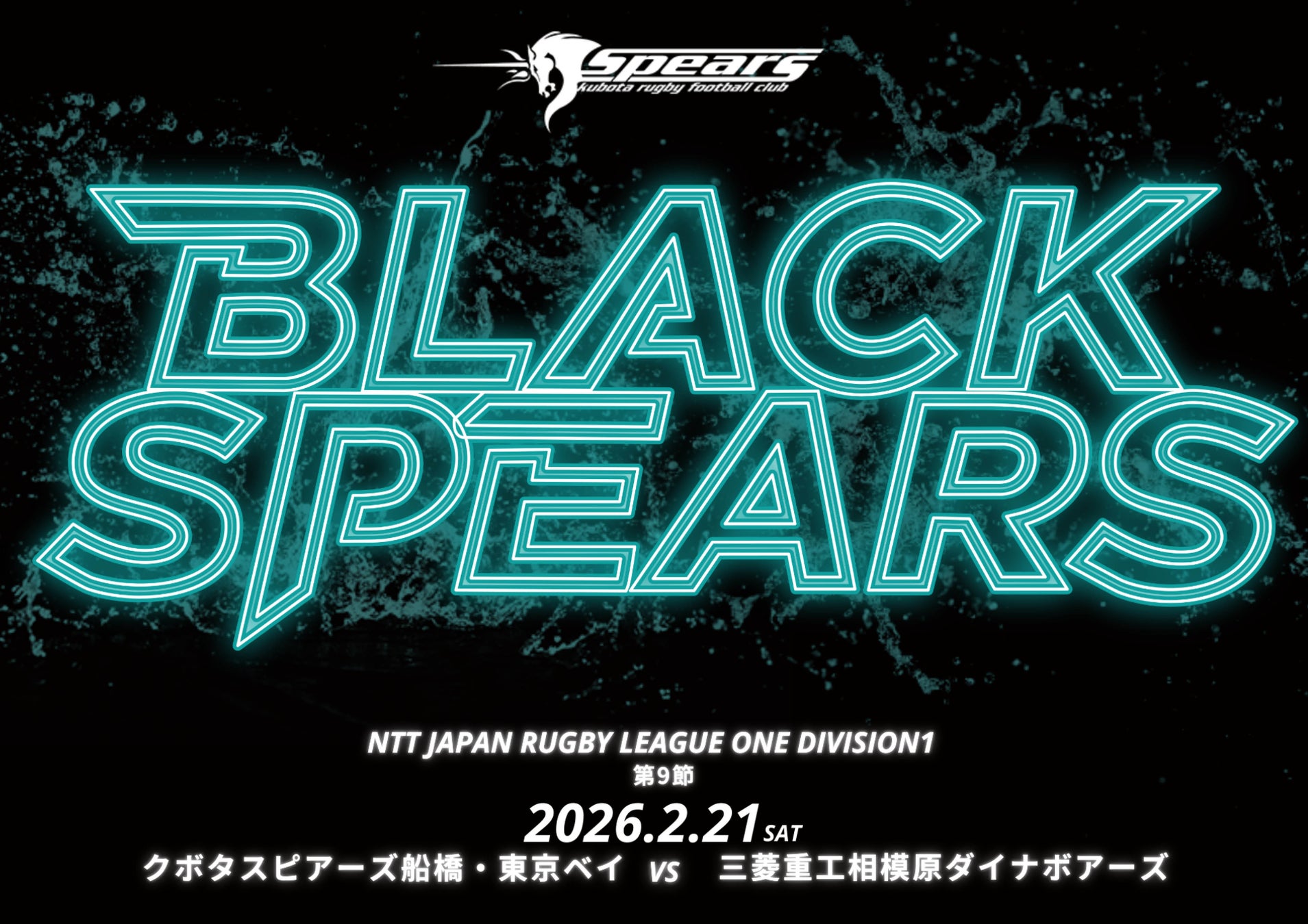 クボタスピアーズ船橋・東京ベイは、2月21日(土)に行われるNTTジャパンラグビーリーグワン2025-26 第9節 三菱重工相模原ダイナボアーズ戦において、初となる「BLACK SPEARS」を開催いたします。