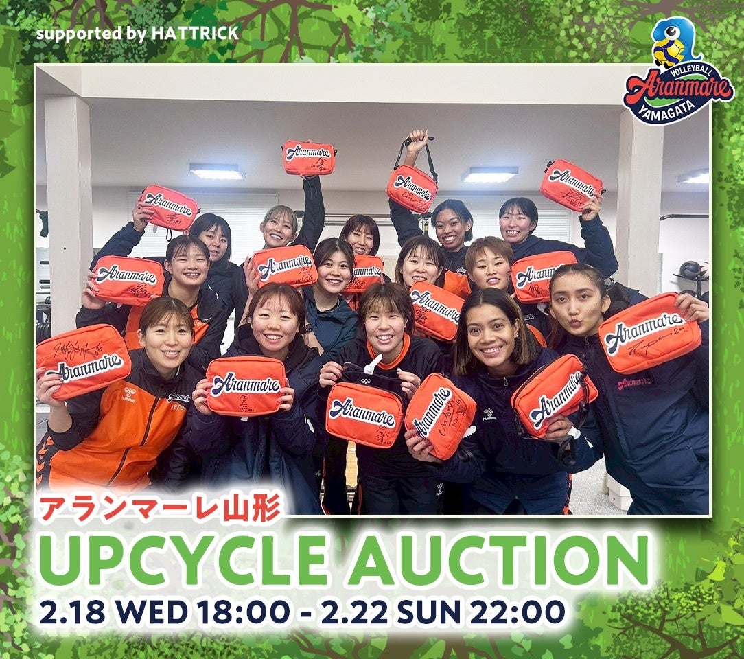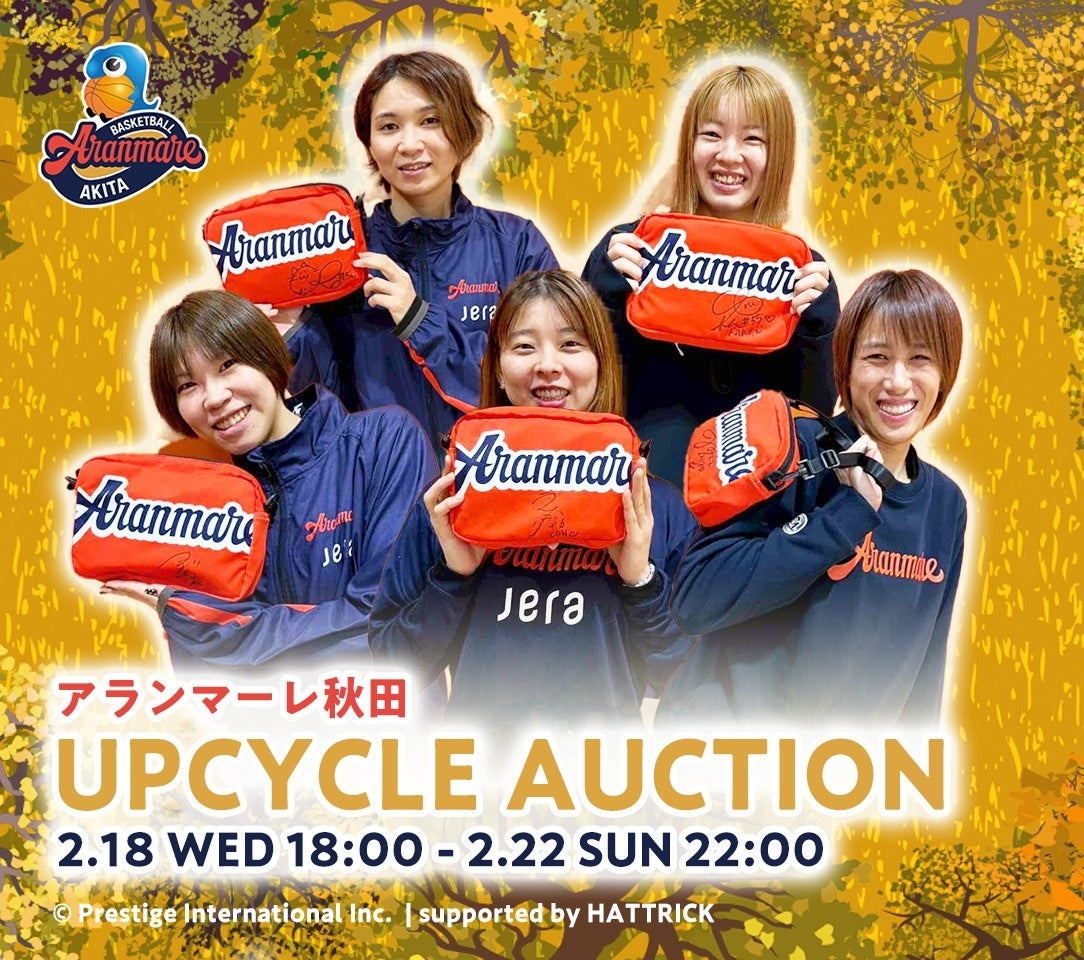 本オークションは、株式会社プレステージ・インターナショナル(本社:東京都千代田区、代表取締役:玉上進一)が運営する女子スポーツチーム、アランマーレ秋田(バスケットボールチーム)・アランマーレ山形(バレーボールチーム)・アランマーレ富山(ハンドボールチーム)の3チームが、バリュエンスジャパン株式会社(本社:東京都港区、代表取締役:冨田 光俊)が運営するスポーツチーム公認オークション「HATTRICK Auction」にて開催するアップサイクルプロジェクト「UPCYCLE AUCTION」です。