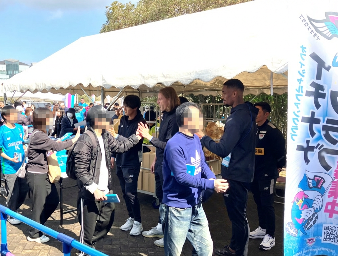 特設ブースでは、「イチナナクラブ」のリニューアルスタートを記念したPRイベントを行いました。ブースにはゲートオープン前から豊田陽平クラブ・コンダクターが登場し、来場したサポーターとのハイタッチ会を実施。さらに、先着2,000名様には記念グッズ「トヨフォト」のプレゼントがあり、多くの方に喜んでいただきました。