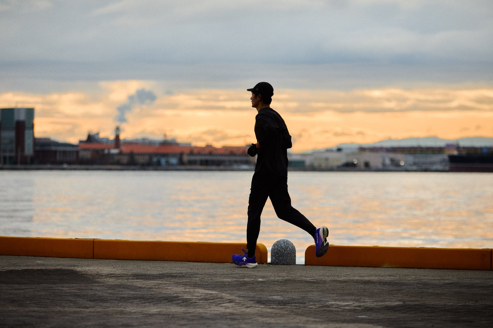 当日は、富士通陸上競技部より三代 直樹コーチ、青柿 響選手、平林 樹選手の3名をゲストに迎え、夜明け前の静寂から新しい一日が始まる瞬間を共有し、約10kmのコースを共に走るという特別な時間を過ごしました。参加者からは「スタジアムを走れる体験は特別で、楽しかった」や「写真を撮ってもらえることが、モチベーションになった」などの好評のコメントをいただきました。