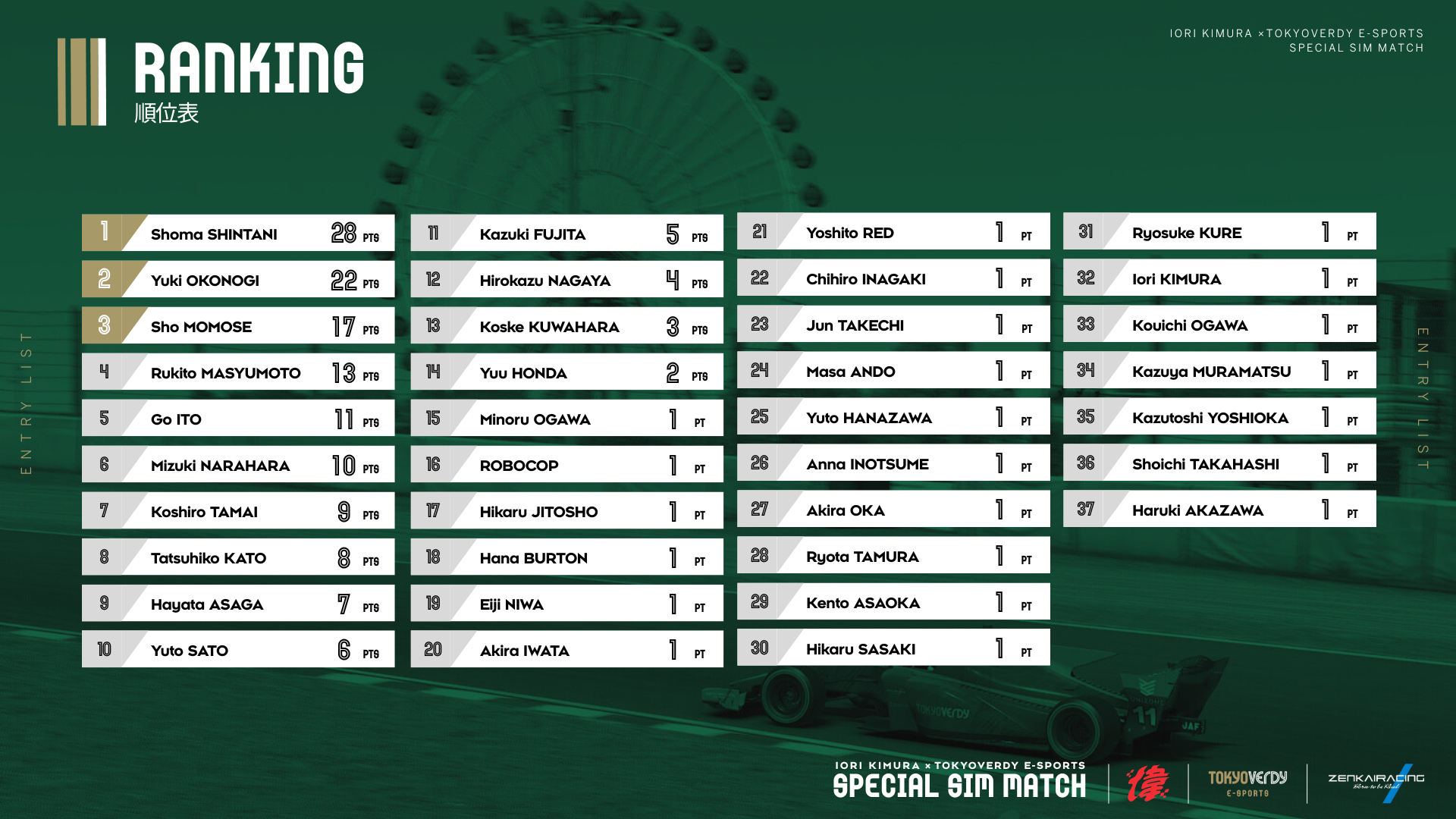 2月15日(日)、プロレーサー・木村 偉織 選手と東京ヴェルディeスポーツの共同主催、ZENKAIRACINGのサポートによる「SPECIAL SIM MATCH」がオンラインレースプラットフォーム『iRacing』にて開催されました。