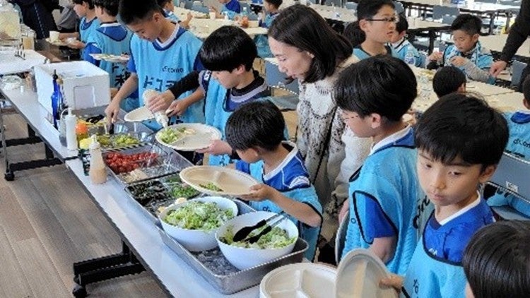 好きなメニューをお皿に載せたあと選手が普段食べている食事を体験することで、自分もチームの一員になれたようでモリモリ食べていました。「美味しい!」という声があちこちから響き、おかわりをしている子どもも目立ちました。