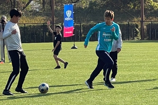 お二人がサッカー教室に合流されてからは、緊張が混じりながらも貴重な時間を楽しむ子どもたちの顔が見られました。