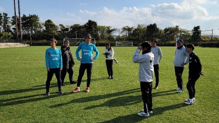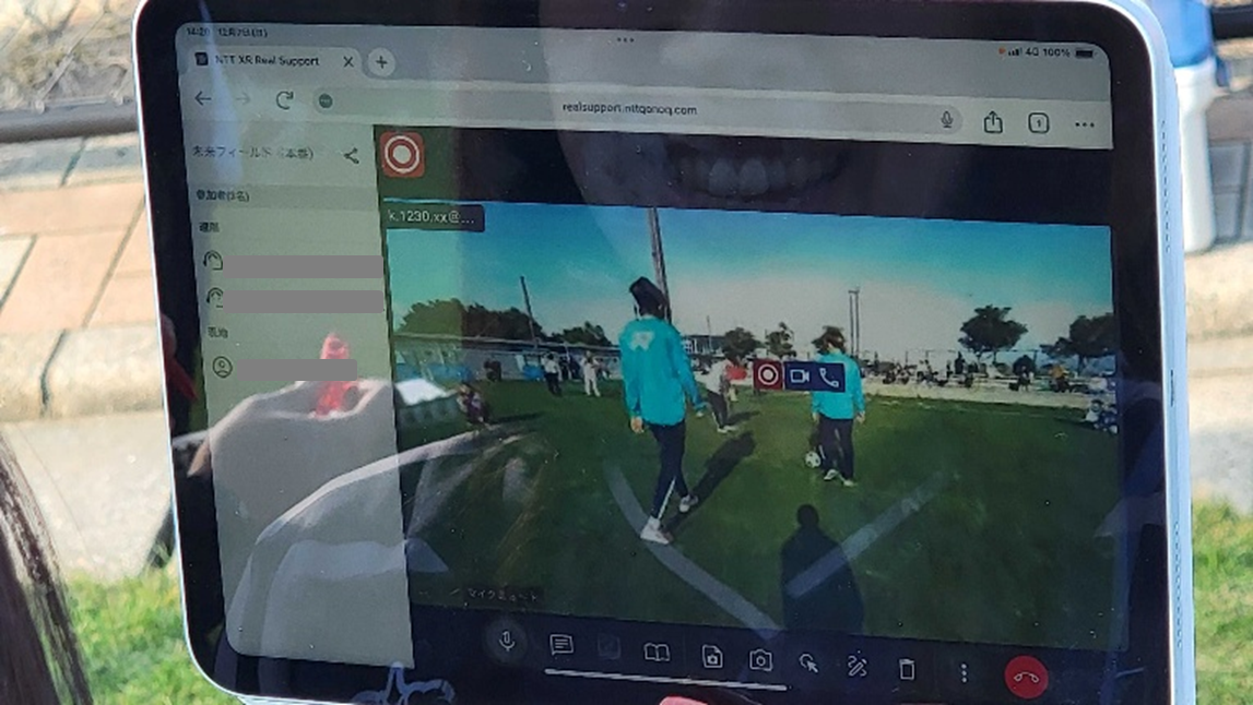 また、今回の未来フィールドでは全国初の取り組みとして、株式会社NTTコノキューのXRグラス「MiRZA」を用いて、サッカー教室の様子をリアルタイムで離れた場所に映像伝送するイベントを実施しました。
