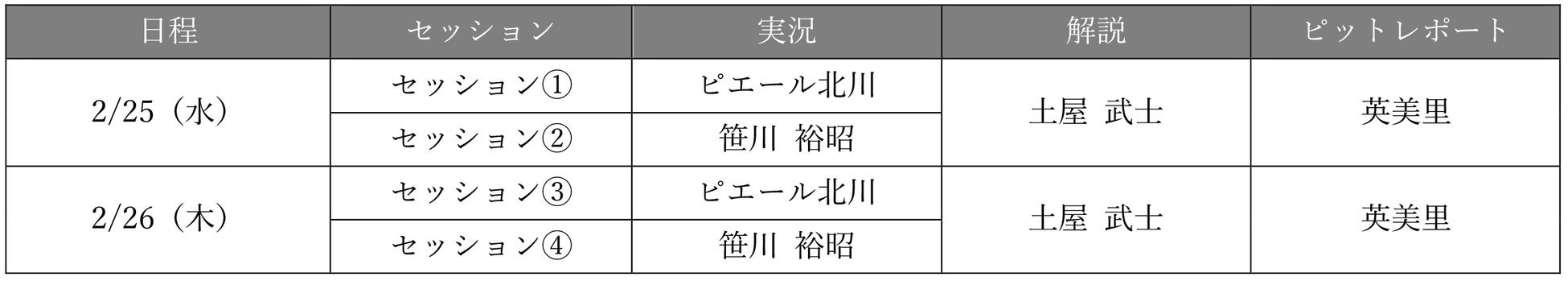 ※今回の公式テストは公式放送と場内放送は同じ出演者となります。