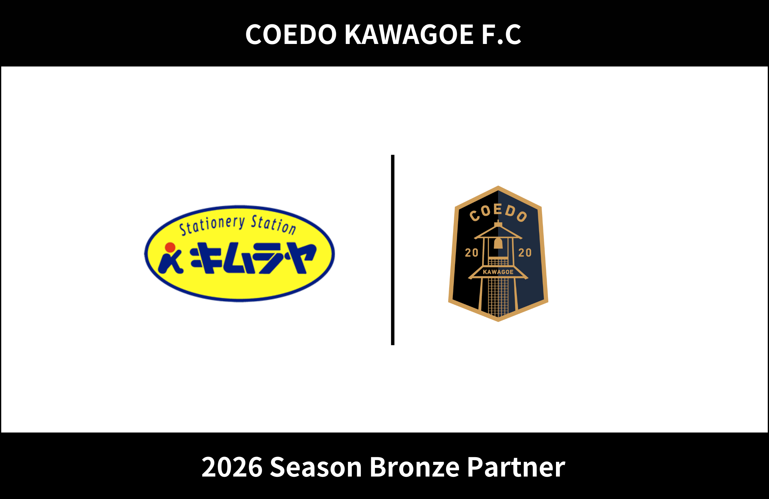 COEDO KAWAGOE F.Cを運営するCOEDO KAWAGOE F.C株式会社(埼玉県川越市、代表取締役 有田和生)は、川越で1928年(昭和3年)創業、100坪の店内には、文具・事務用品、ファンシー雑貨、画材、書道用品などバラエティ豊かな品揃えでニーズに応え続ける小江戸川越・クレアモールの文房具屋である株式会社木村屋商店(埼玉県川越市、代表取締役 木村昌幸)と2026シーズンのブロンズパートナー契約を増額にて締結したことを発表いたします。