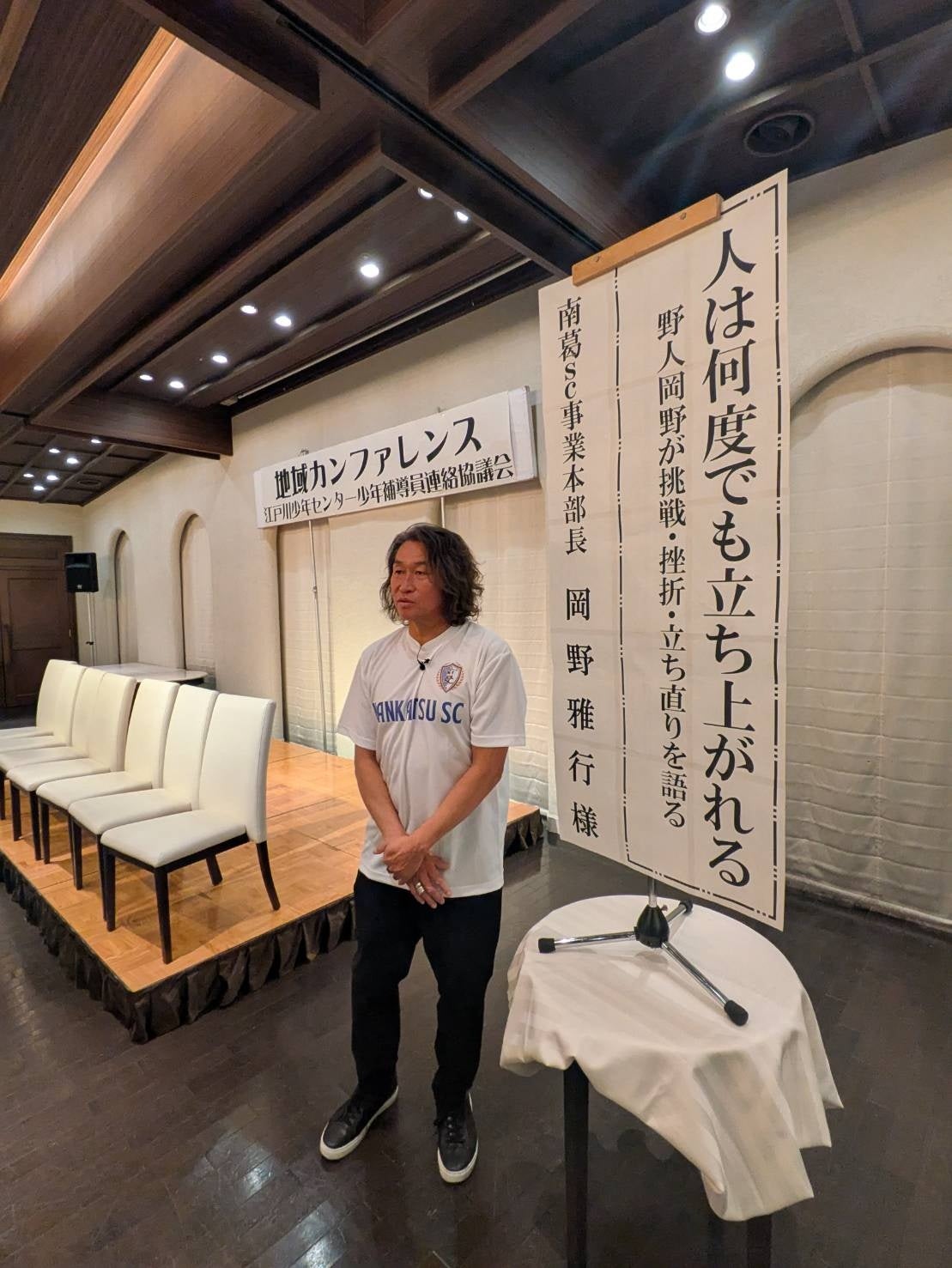 南葛SC(東京都葛飾区)は、2026年2月19日(木)、江戸川少年センター少年補導員連絡協議会が主催する講演会において、事業本部長・岡野雅行が講師として登壇いたしました。