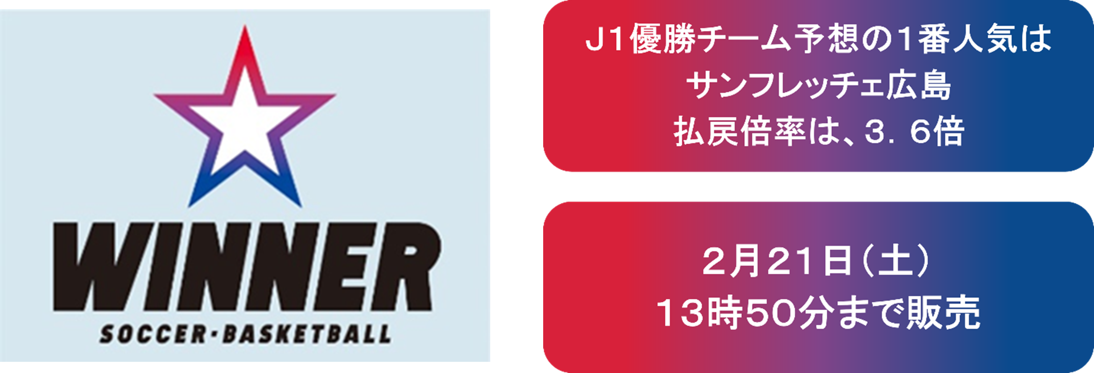 現在、明治安田J1百年構想リーグ(以下「J1リーグ」といいます)の優勝チームを予想する「競技会予想くじ」と、2月21日(土)・22日(日)に開催されるJ1リーグ及び明治安田J2・J3百年構想リーグ(以下「J2・J3リーグ」といいます)の第3節の各試合を対象とした「1試合予想くじ」を販売中です。