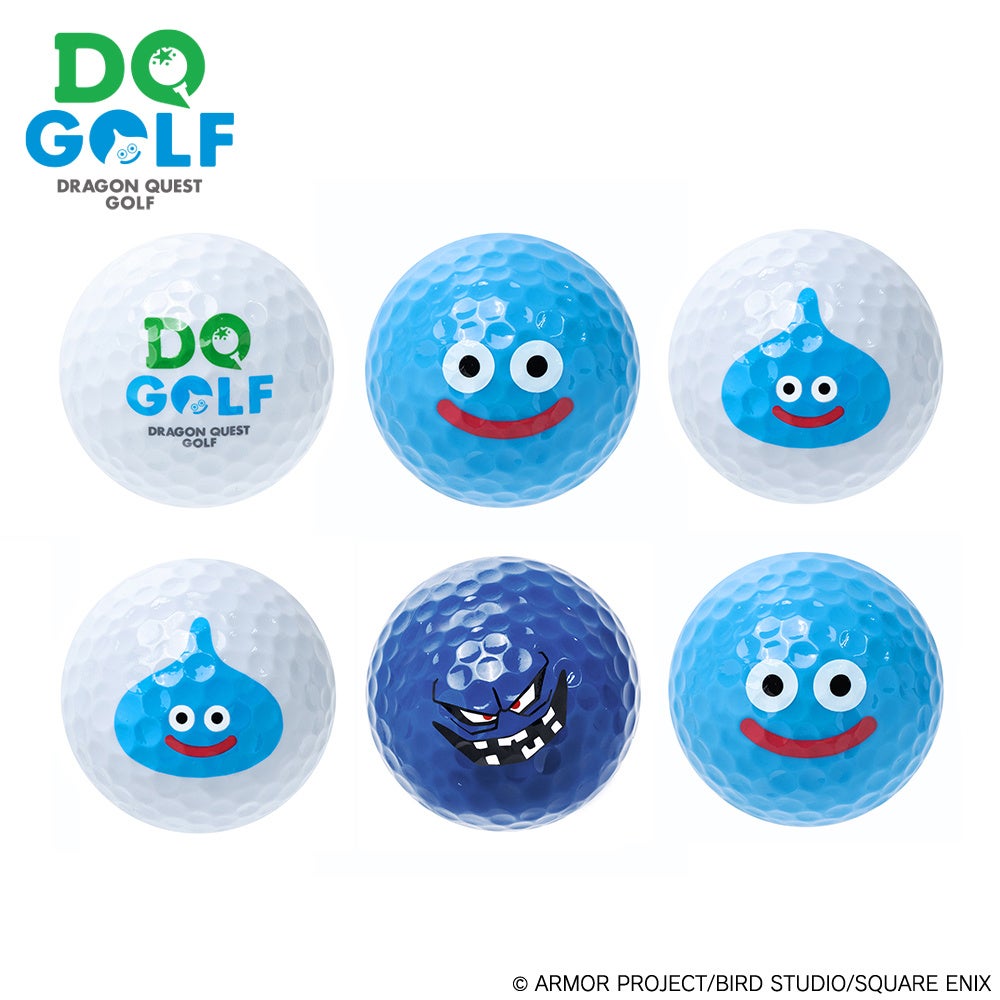 「冒険へ旅立とう!」をテーマに、スライムの顔がデザインされたゴルフボールや、モンスター型のヘッドカバー、各所にデザインされたスライムたちと鮮やかなブルーが目を引くキャリーバッグなど、