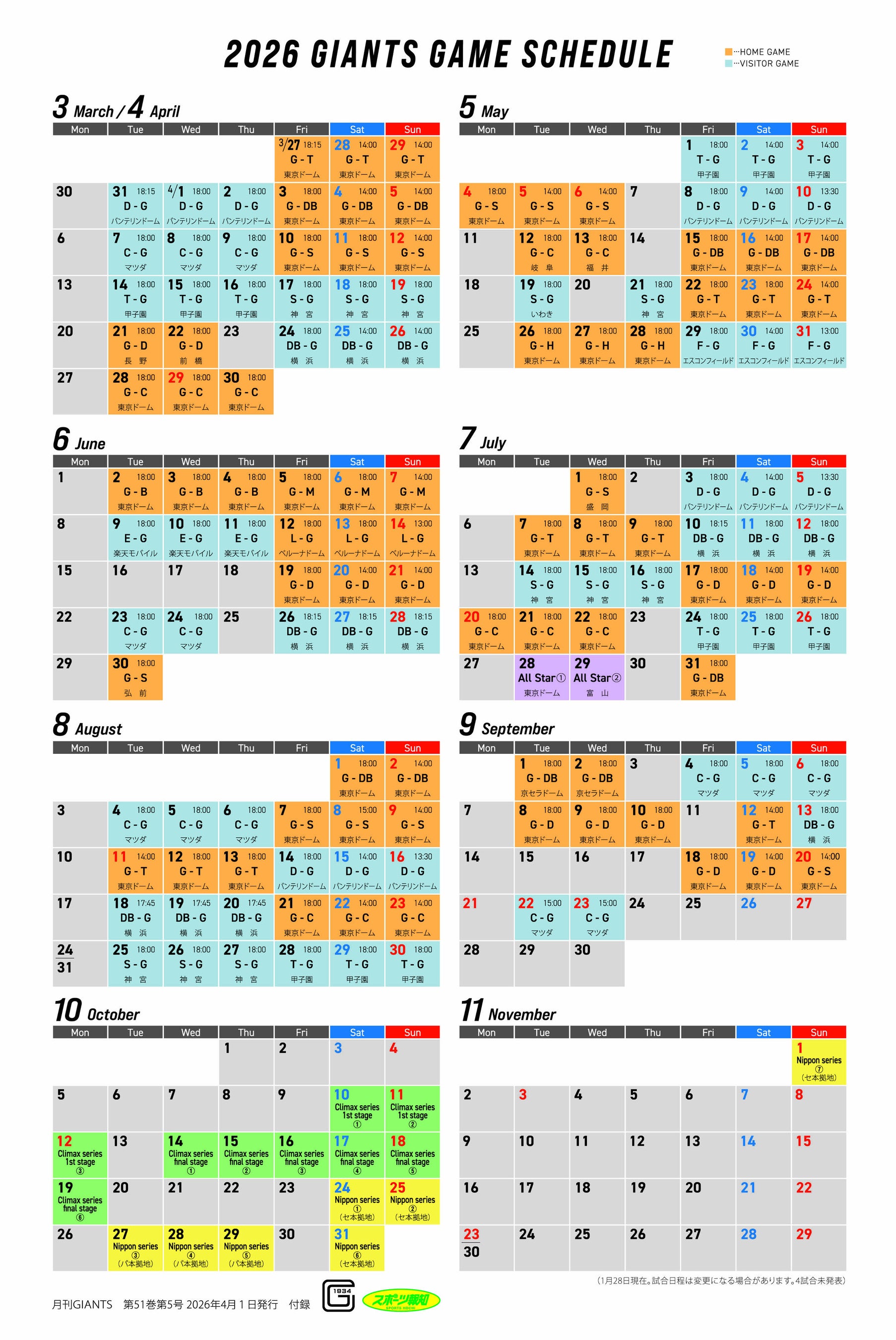 「スポーツ報知」を発行する報知新聞社(代表取締役社長・長谷川剛)は、読売巨人軍監修のファンマガジン「月刊ジャイアンツ」の創刊50周年記念号となる2026年4月号を2月24日(火)から順次、全国の書店、オンライン書店などで発売します。A4判88ページオールカラー、巨人戦日程入りクリアファイルと石塚裕惺選手デジタルアクリルスタンドの創刊50周年記念ダブル付録に、50周年記念編集で、特別定価1,000円(税込)です。書店でのお取り寄せ可能。お近くのYC(読売新聞販売店)でも注文を承ります。ECサイトの「ジャイアンツ公式オンラインストア」、「ショップ報知」、東京ドームの巨人軍直営グッズショップ「GIANTS STORE BALLPARK TOKYO」でも購入できます。