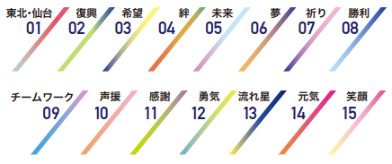 デザインのコンセプトは、“勝利と希望への光”です。基調色に勝ち色と呼ばれる伊達政宗公が愛した濃紺色をデザインしました。今年で東日本大震災から15年目の節目ということで、“勝利と希望への光”というそれぞれの思いを込めた15本のタスキをデザインしました。
