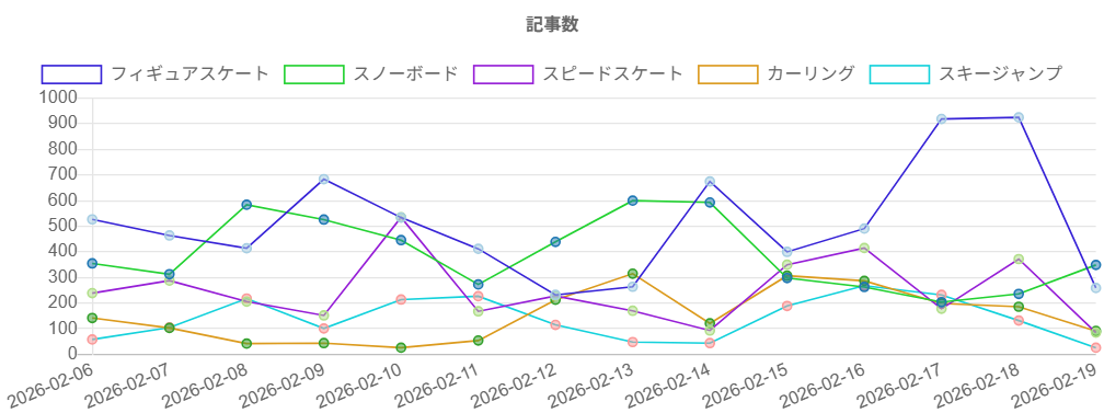 今回、2026年2月6日 ~ 2026年2月19日までの期間に掲載された「冬季オリンピック」人気上位5種目の記事を「Qlipper」を使いランキング形式で比較しました。