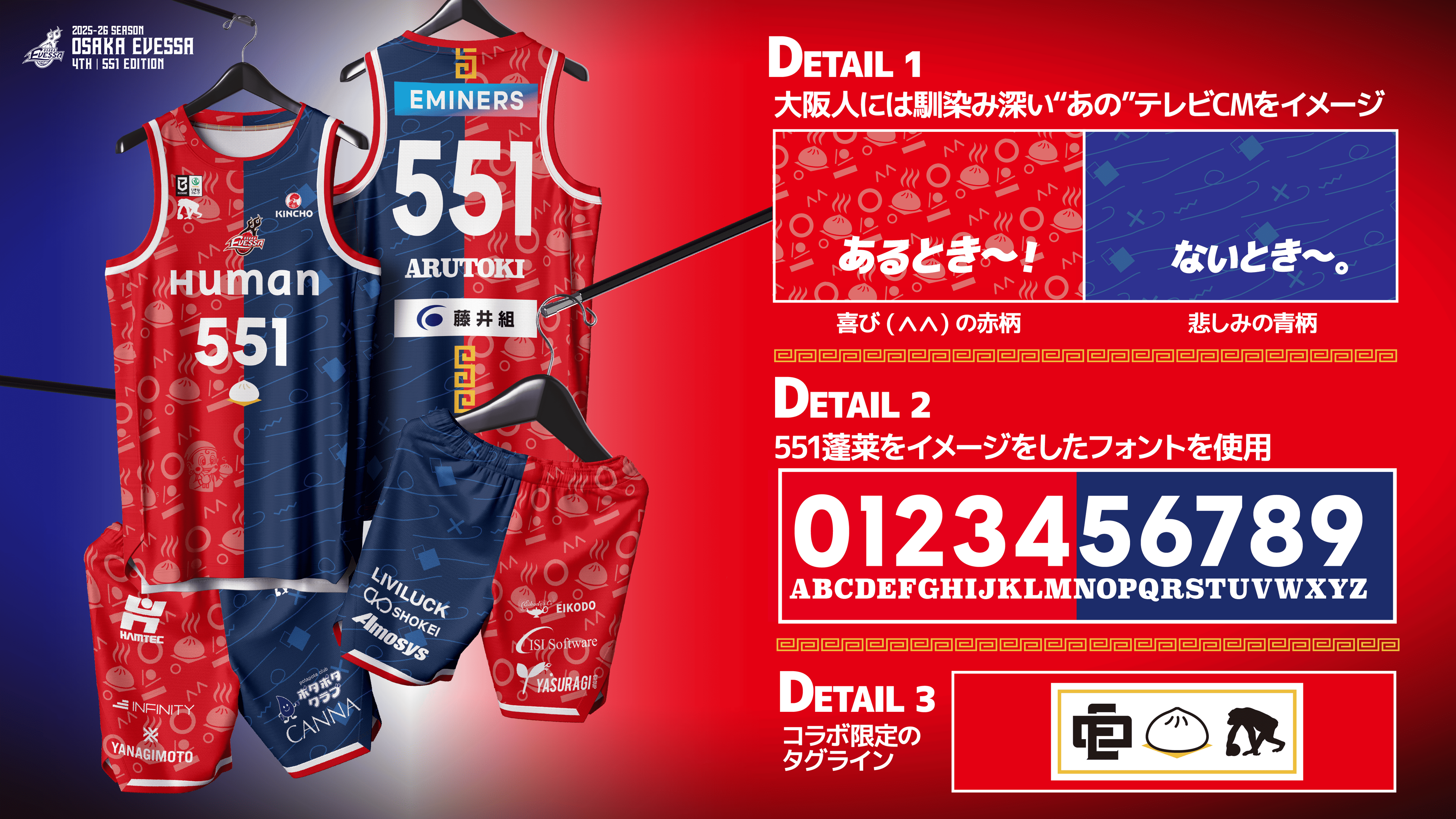 大阪エヴェッサでは、4月11日(土)・12日(日)のFE名古屋戦にて、大阪を代表する名店「株式会社蓬莱」(551蓬莱)さまとのSPコラボレーションゲーム開催が決定しましたことをお知らせいたします。