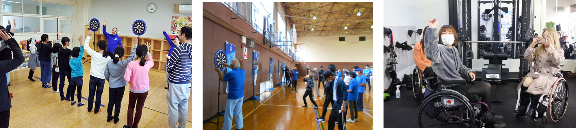 「ダーツを誰もが楽しめるスポーツに」というスローガンを掲げ活動をしています。生涯つづけることのできる「スポーツ」として老若男女・障がいの有無問わずいろいろな方がダーツをもっと気軽にはじめられるよう、全国の児童館や学校、自治体などを通してさまざまな活動をおこなっています。