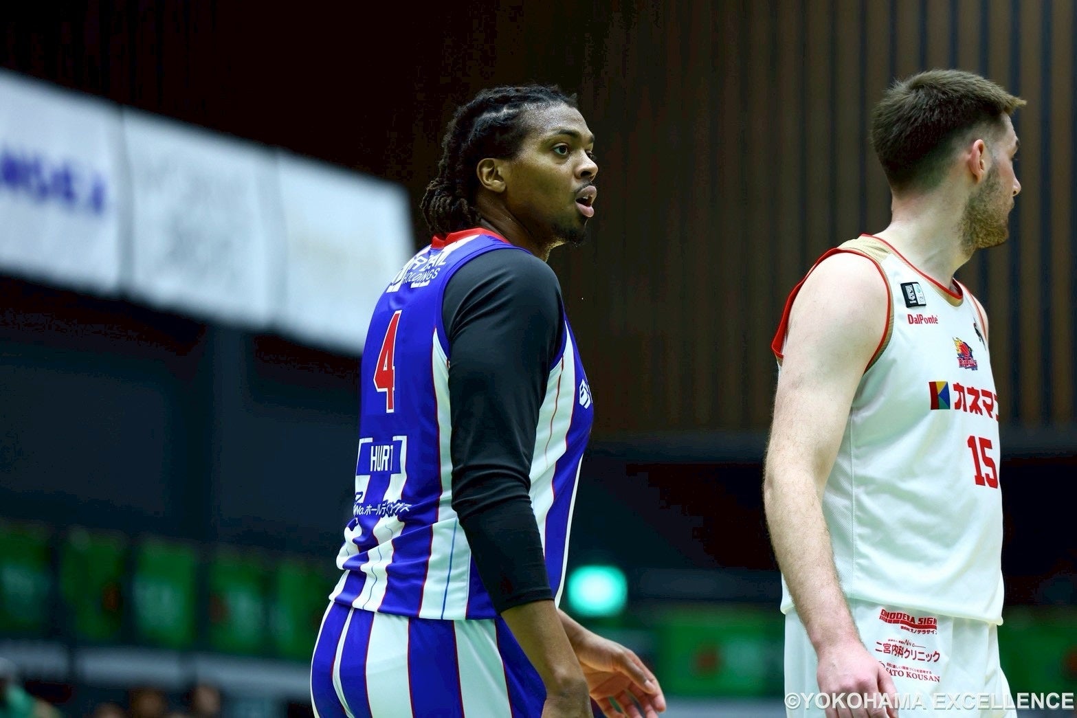 1Qに引き続き、前節B2個人通算1,000得点も達成し得点ランキング首位に立つ「#1 トレイ・ボイドIII」がチームを引っ張る得点力を見せたものの、2Q終盤に「0-10」のランを許すなど一時逆転をされてしまうものの再逆転をして「34-31」と3点リードして前半終了。