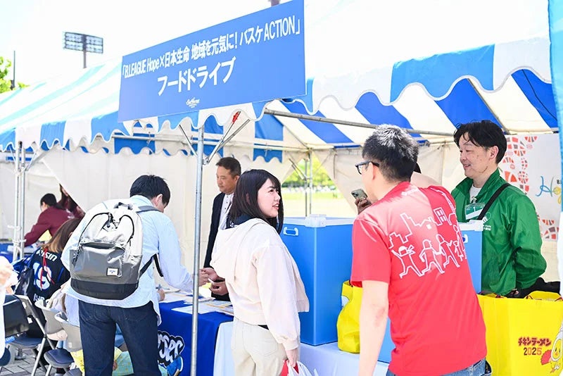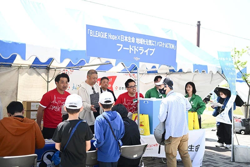 「B.LEAGUE Hope×日本生命 地域を元気に!バスケACTION」フードドライブブース