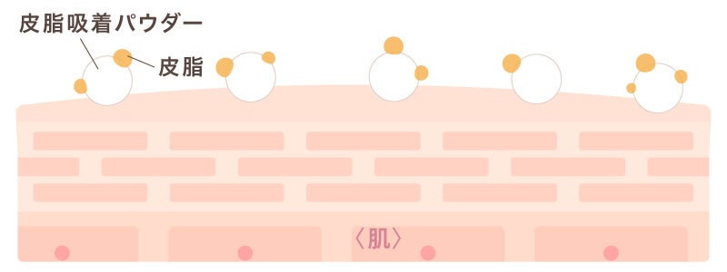 皮脂吸着パウダーが余分な皮脂を抑え、長時間美しい仕上がりを持続。