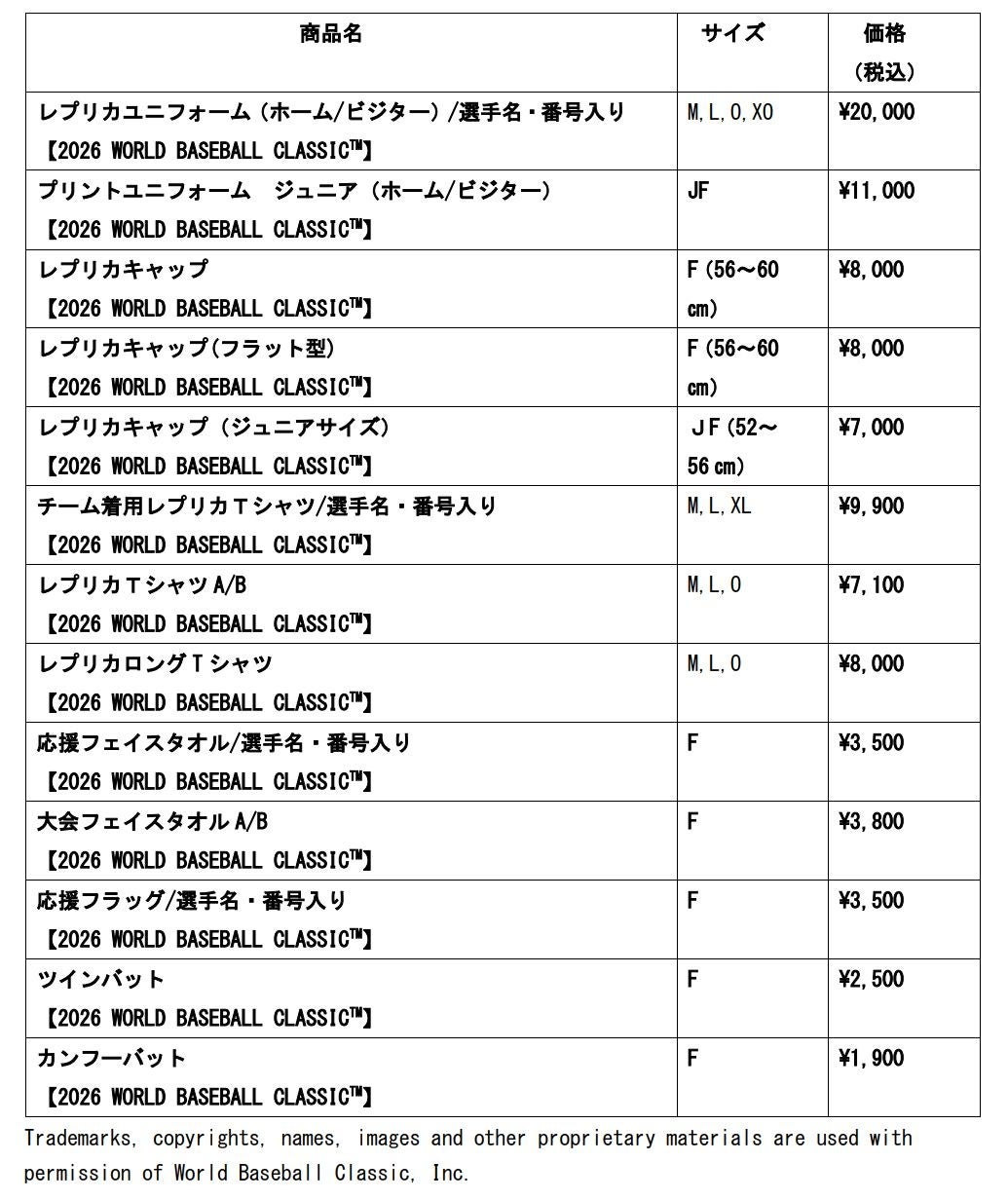 このショップでは「2026 WORLD BASEBALL CLASSICTM」侍ジャパンのレプリカユニフォームをはじめとする応援アイテムを中心に販売します。