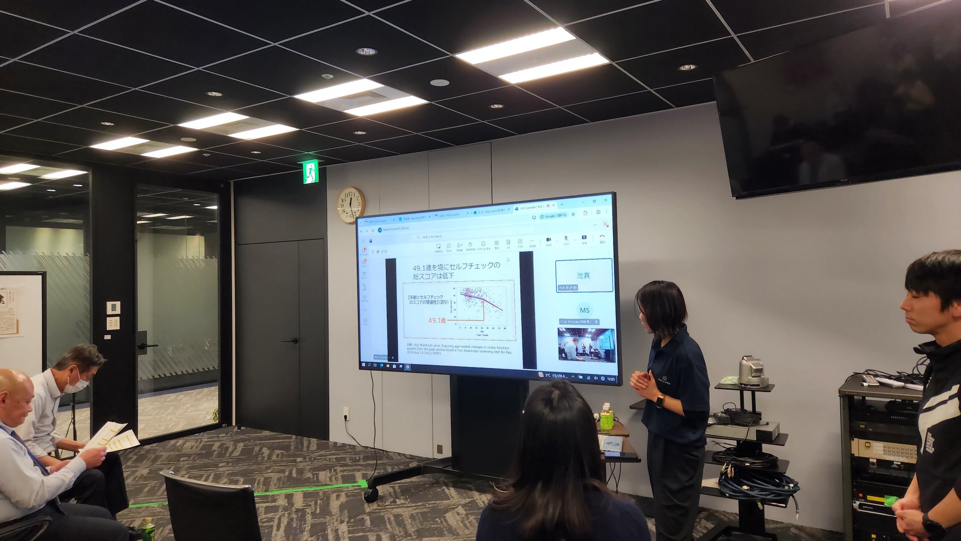 また、講師からは、「セルフチェック」のスコアと運動時の痛みとの関連や、改善エクササイズを行うことによる痛みの改善に関する研究報告も紹介され、自身の身体の状態を把握した上で、無理のない範囲で改善エクササイズに取り組むことの重要性が共有されました。