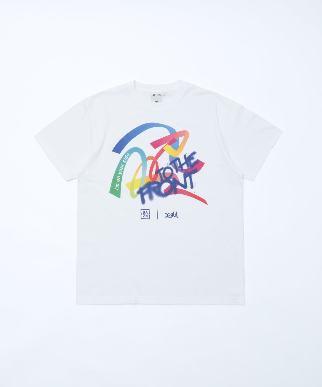 X-girlは時代の変化に合わせ、音楽・カルチャー・スポーツ等のストリートシーンから着想を得て、ファッションを通じ多くのメッセージを伝えてきました。昨年に続き、国際女性デーを記念し制作された「DAZN×X-girl Statement Wear」には、女子スポーツを応援するDAZNとX-girlの想いが込められています。多様性、女性の華やかさを色で表現したリボン様の帯が交差し、繋がっていくデザインにX-girlのブランドメッセージ「TO THE FRONT」を重ねることで、女子アスリートの背中を後押しし、女子スポーツを応援するFAN(ファン)の声援、拍手によって女子アスリートが輝く未来を表現いたしました。